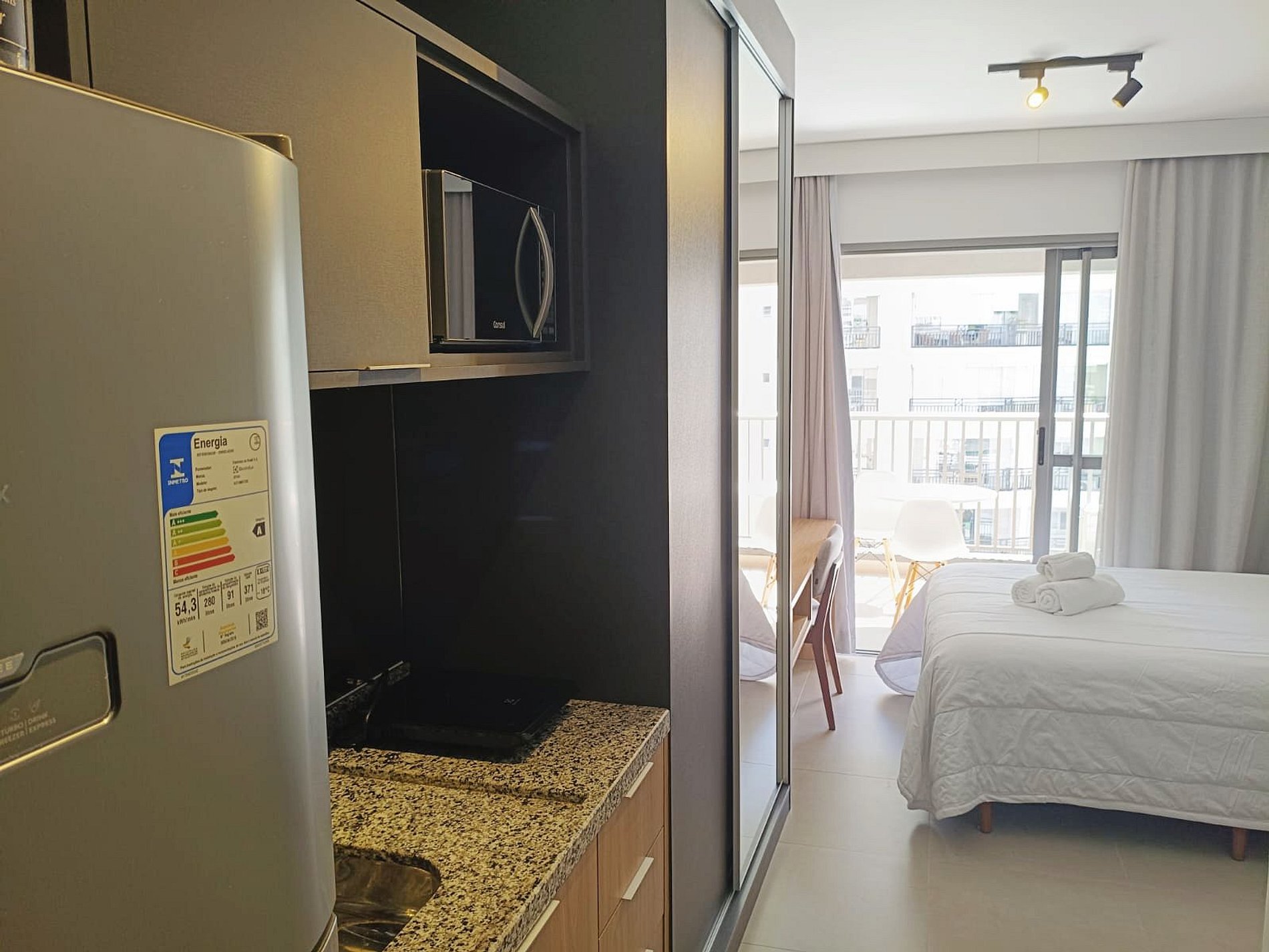 Enjoy an elegant experience in this well-located place. Studios with modern and sophisticated furniture, a kitchen equipped with top-of-the-line appliances, and utensils such as dishes, glasses, cookware, cutlery, etc. Living rooms equipped with Smart TV and Wi-Fi.