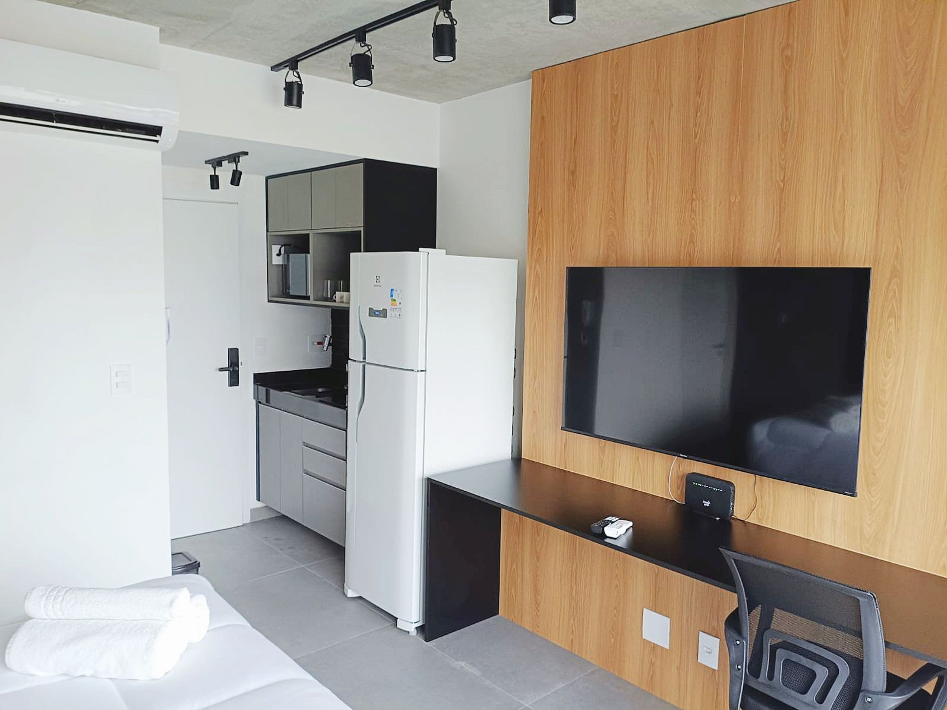 Nossos studios fue pensado para que no abriera mão de estilo, conforto y praticidade. Imagine un lugar donde el diseño contemporáneo se encuentra con el aconchego de un lar, criando el escenario perfecto para su viaje a São Paulo.