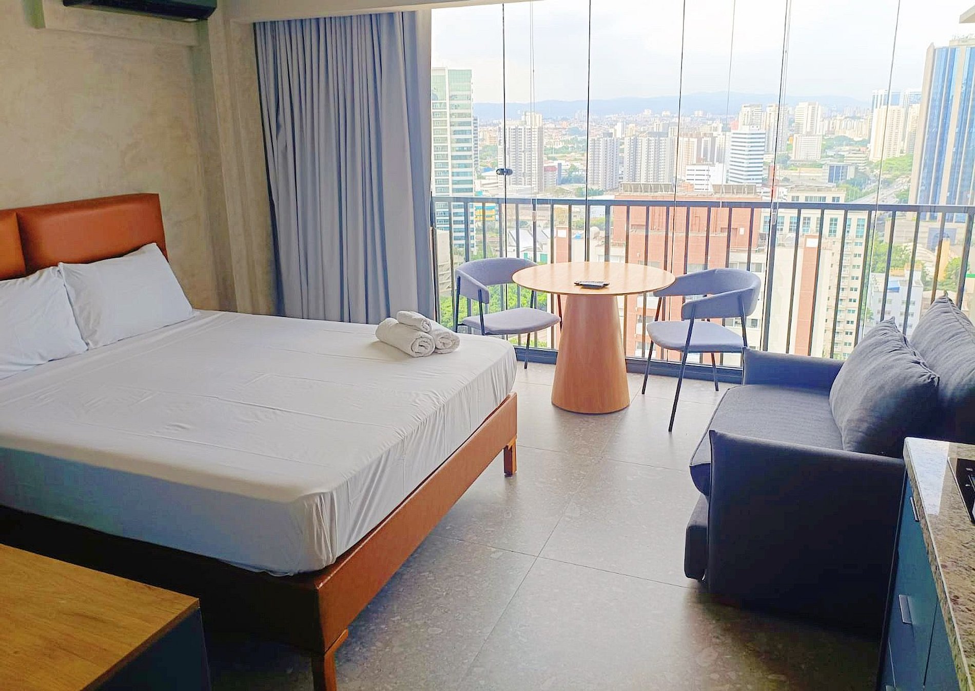 Nuestros estudios fueron diseñados para quienes no escatiman en estilo, comodidad y practicidad. Imagine un lugar donde el diseño contemporáneo se fusiona con la calidez del hogar, creando el ambiente perfecto para su viaje a São Paulo.