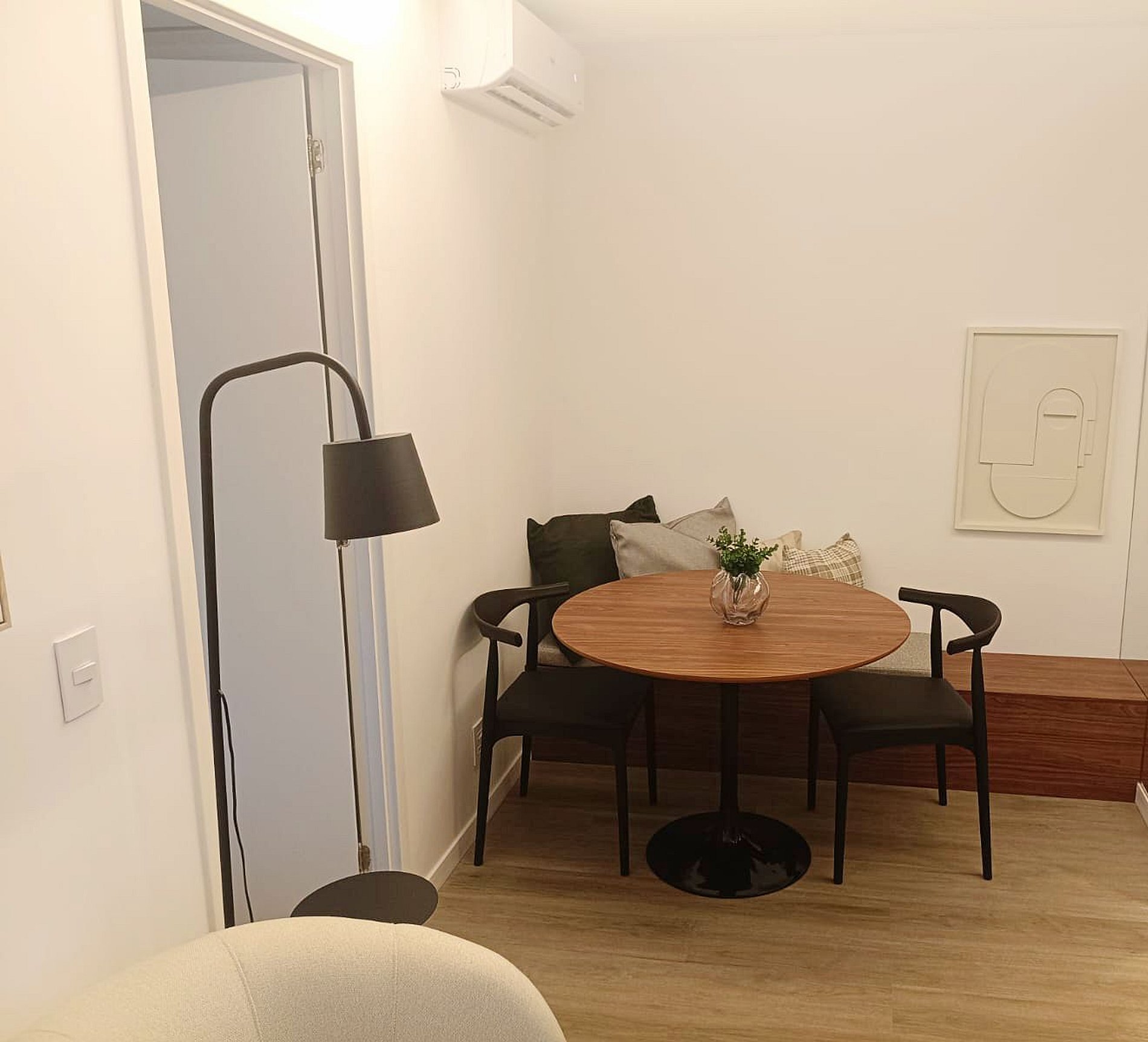 Lindo apartamento elegante de 1 dormitório, com móveis modernos e sofisticado onde o design contemporâneo encontra o aconchego de um lar, criando o cenário perfeito para sua viagem a São Paulo.