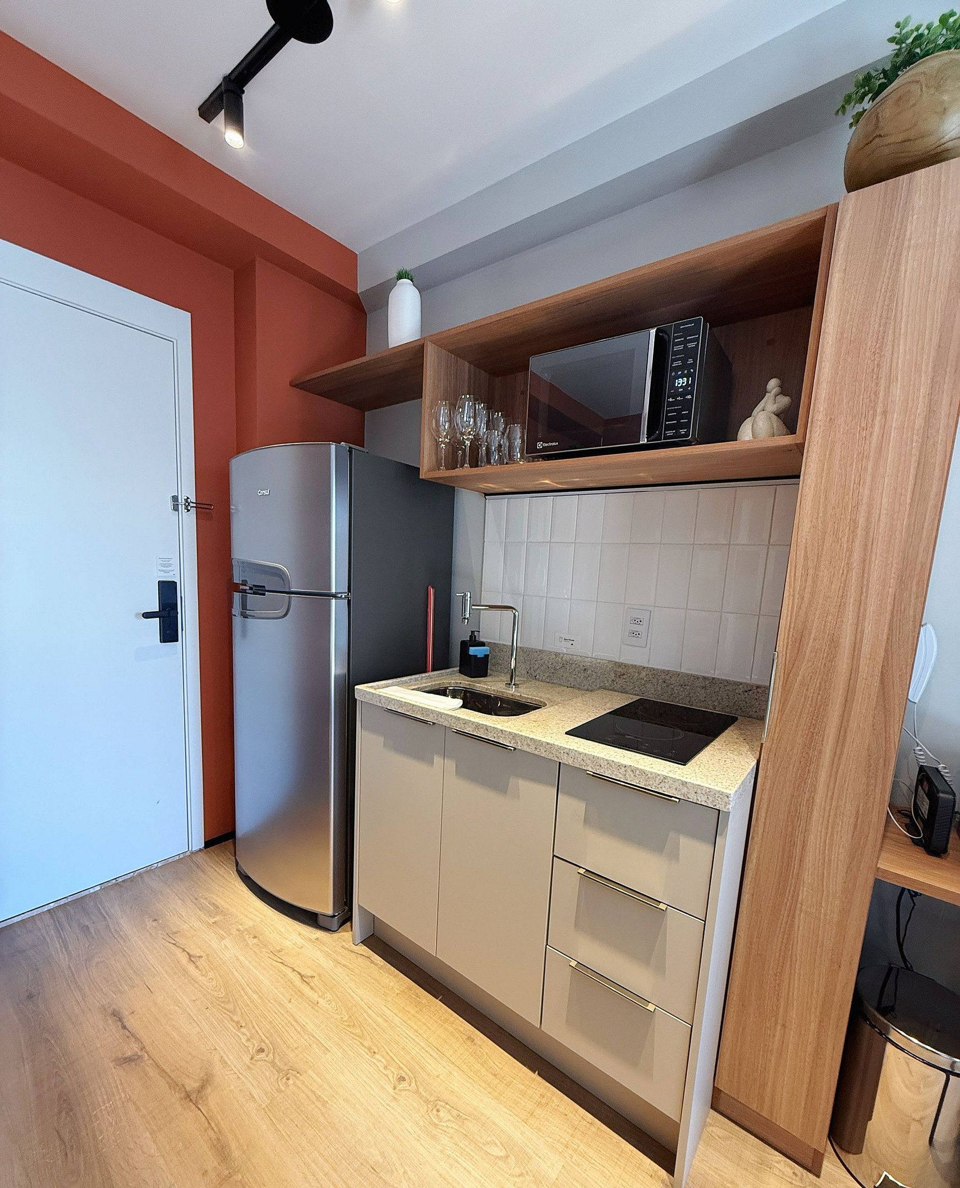 Para quem não abre mão de estilo, conforto e praticidade. Imagine um lugar onde o design contemporâneo encontra o aconchego de um lar, criando o cenário perfeito para sua viagem a São Paulo. Nossa equipe de concierge terá prazer em fornecer todos os detalhes e organizar tudo para sua comodidade. Studio com móveis modernos, cozinha compacta com eletrodomésticos de primeira, máquina de café e utensílios como louças, taças, jogo de panelas, talheres, TV, AC e wifi. Banheiro privativo.