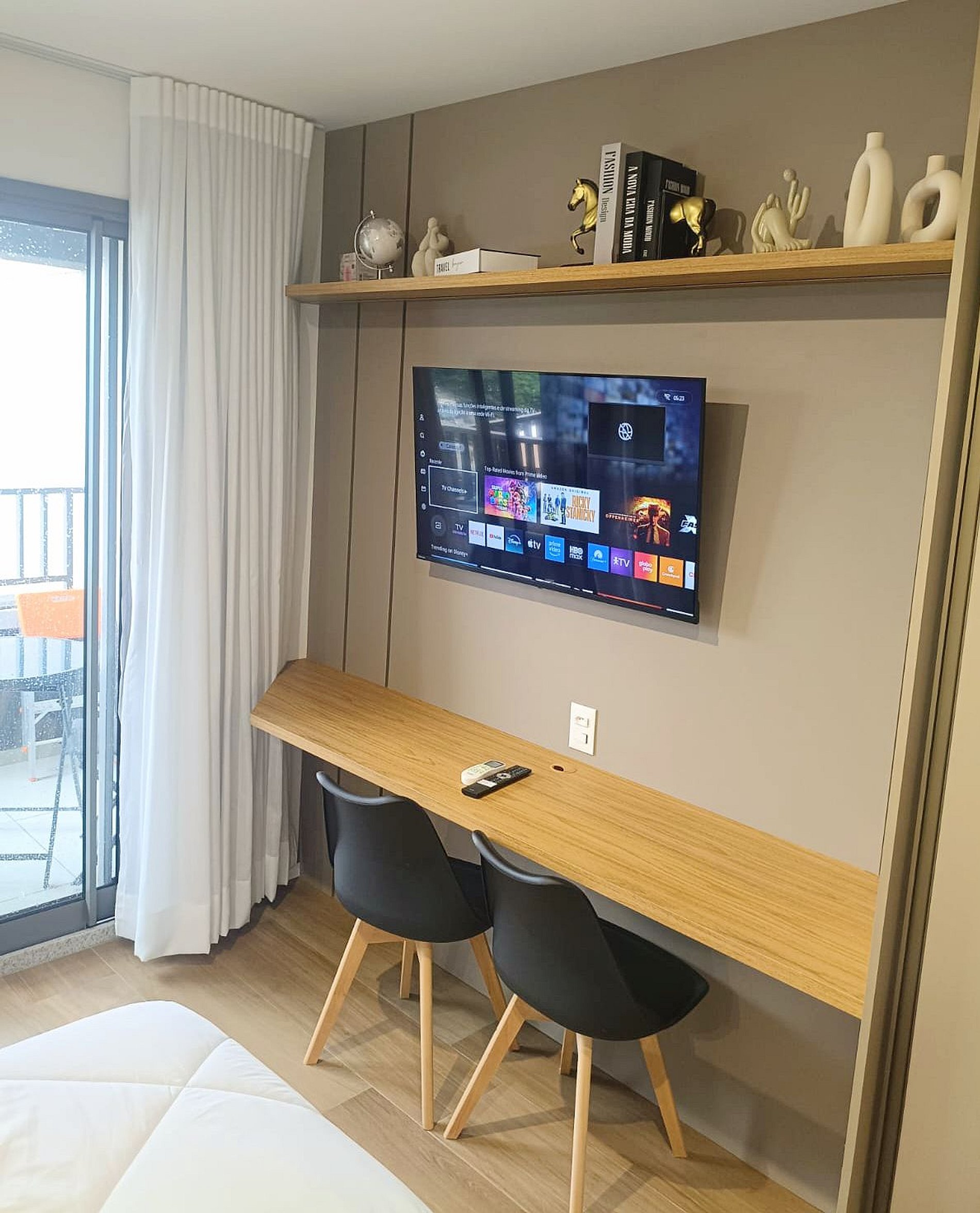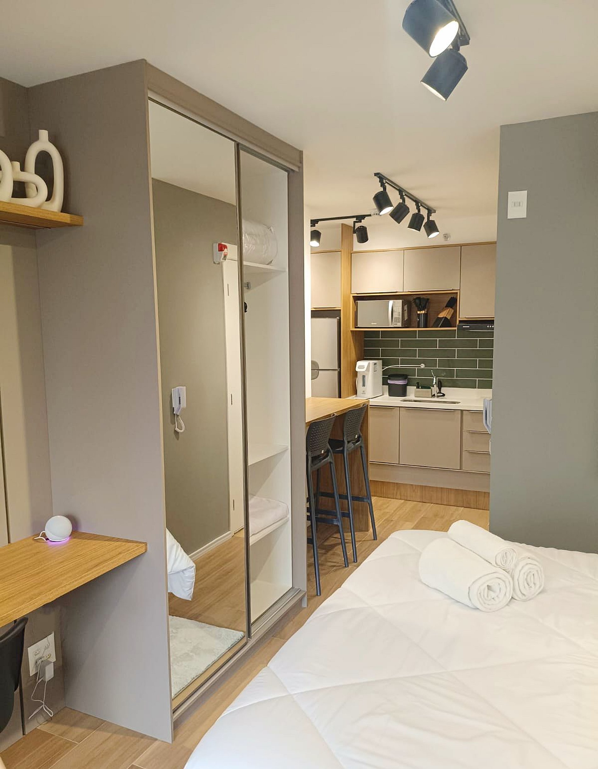 Nossos studios foram pensado para quem não abre mão de estilo, conforto e praticidade. Imagine um lugar onde o design contemporâneo encontra o aconchego de um lar, criando o cenário perfeito para sua viagem a São Paulo.