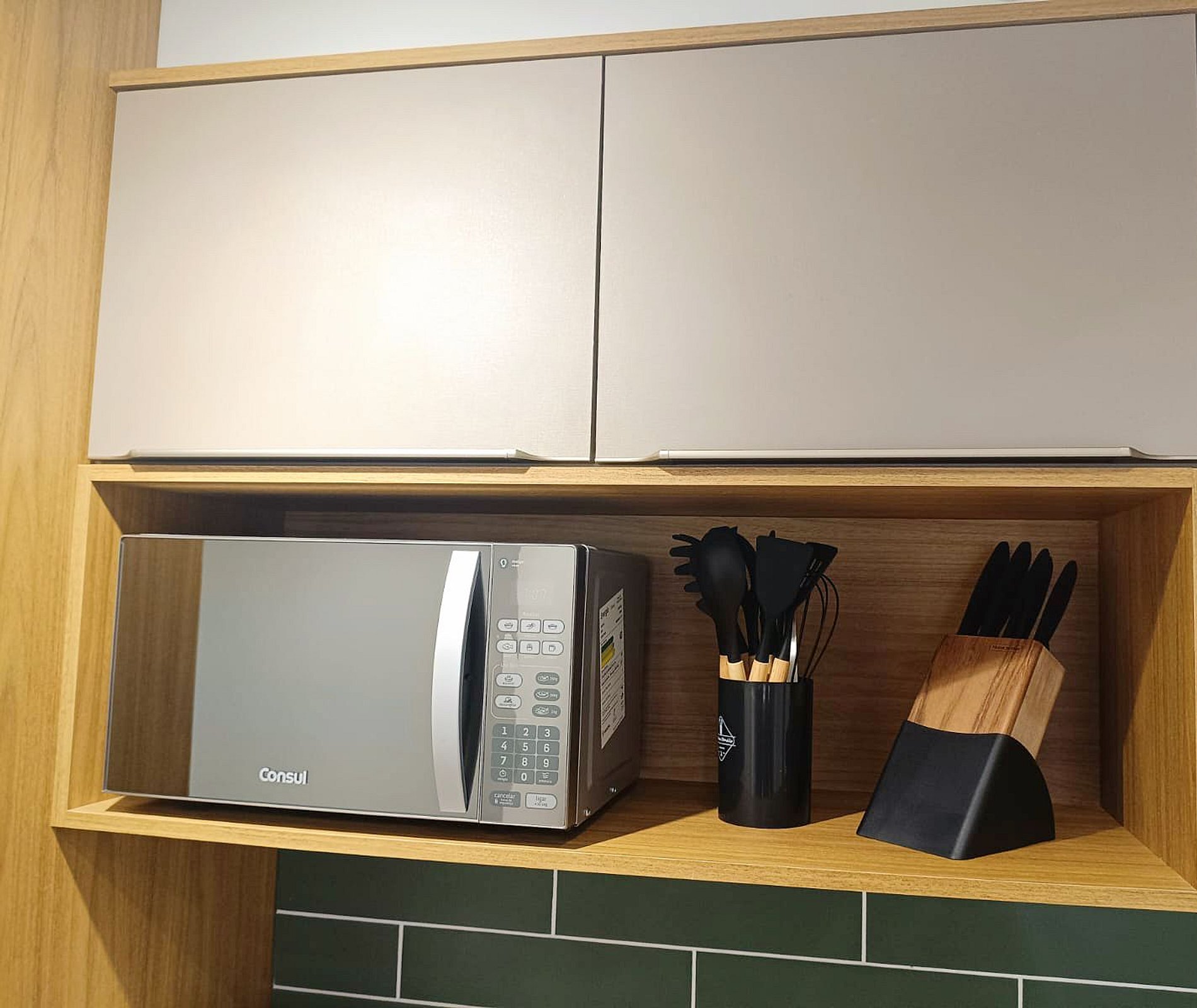 • Cozinha: Planejada e equipada com eletrodomésticos modernos, ideal para o preparo de qualquer refeição.