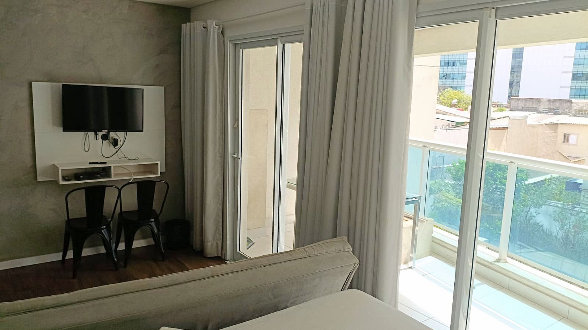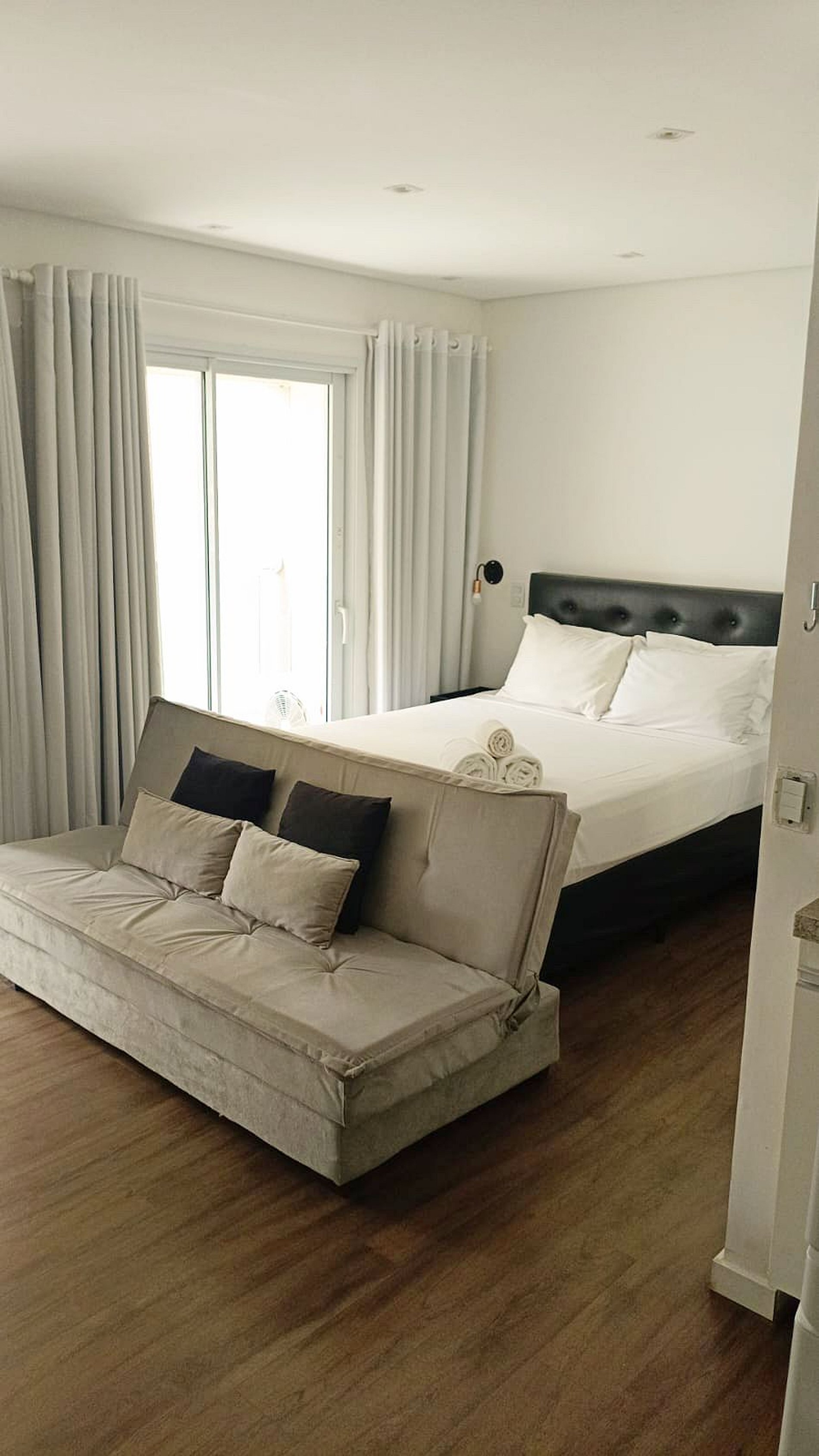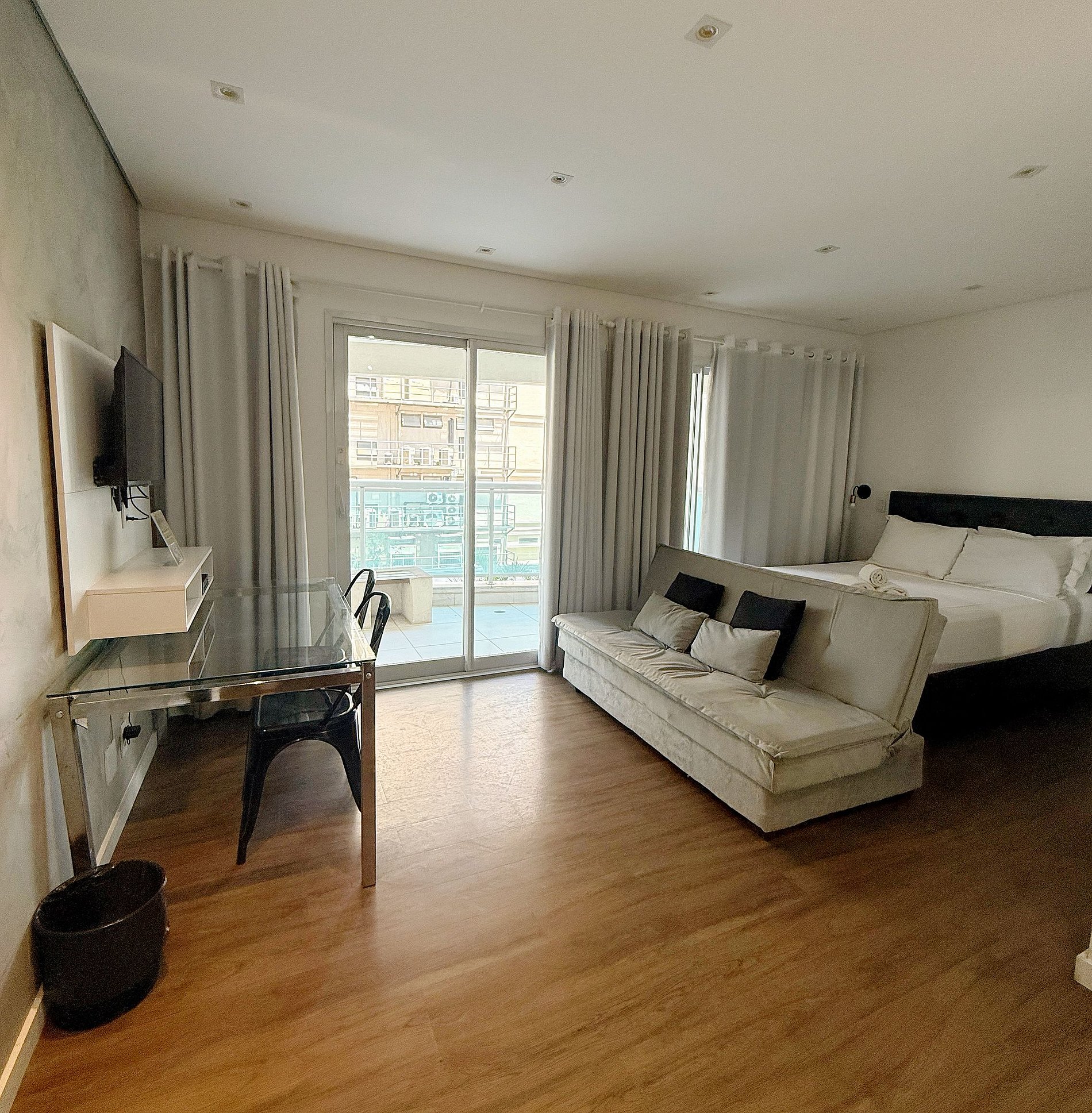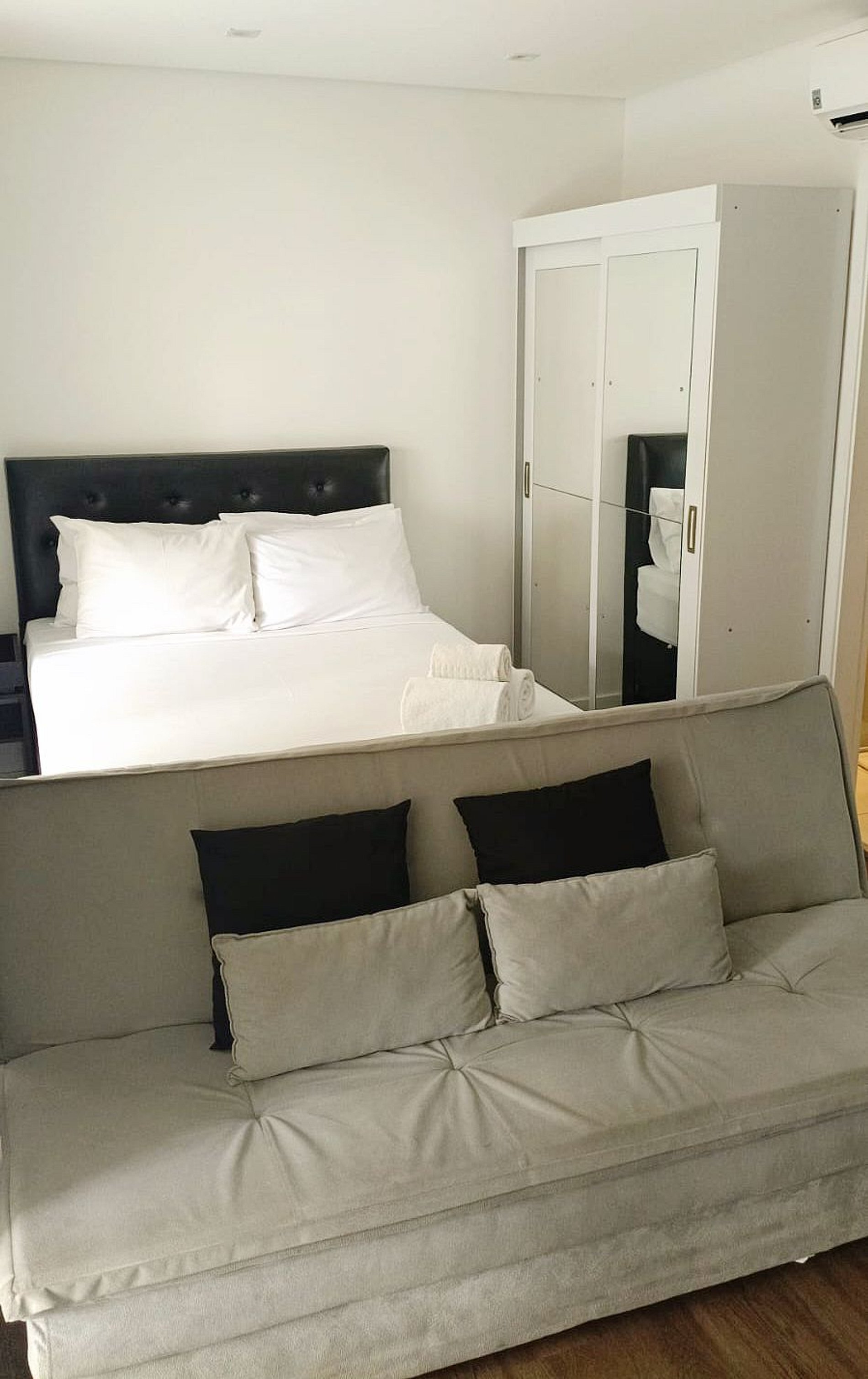 Studio com Sofá cama disponível para seu conforto e praticidade. Imagine um lugar onde o design contemporâneo encontra o aconchego de um lar, criando o cenário perfeito para sua viagem a São Paulo.