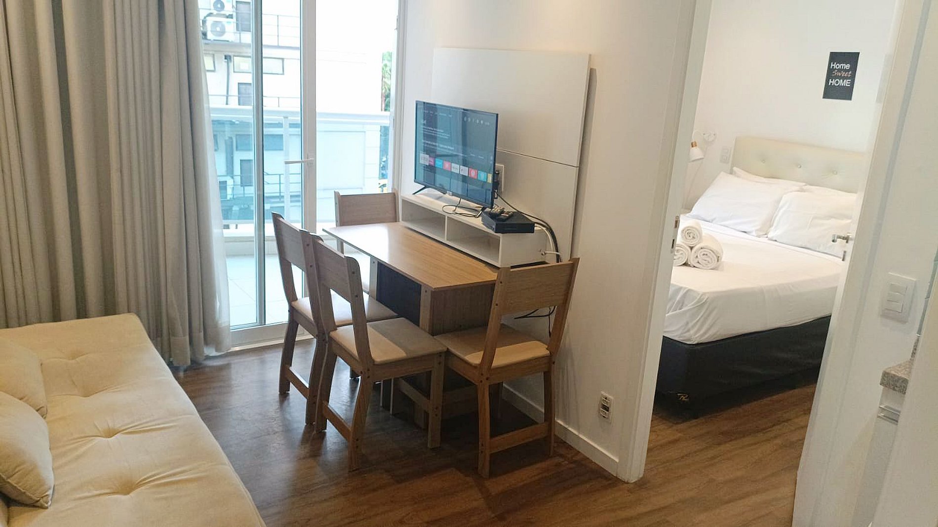 Apartamento de 1 dormitório com Sofá cama disponível para seu conforto e praticidade. Imagine um lugar onde o design contemporâneo encontra o aconchego de um lar, criando o cenário perfeito para sua viagem a São Paulo.