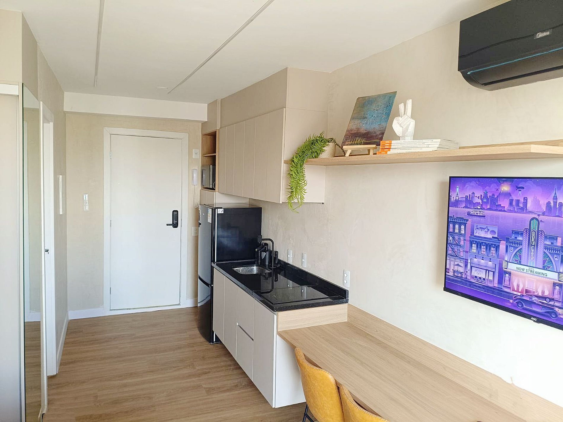 Nossos studios foram pensado para quem não abre mão de estilo, conforto e praticidade. Imagine um lugar onde o design contemporâneo encontra o aconchego de um lar, criando o cenário perfeito para sua viagem a São Paulo.