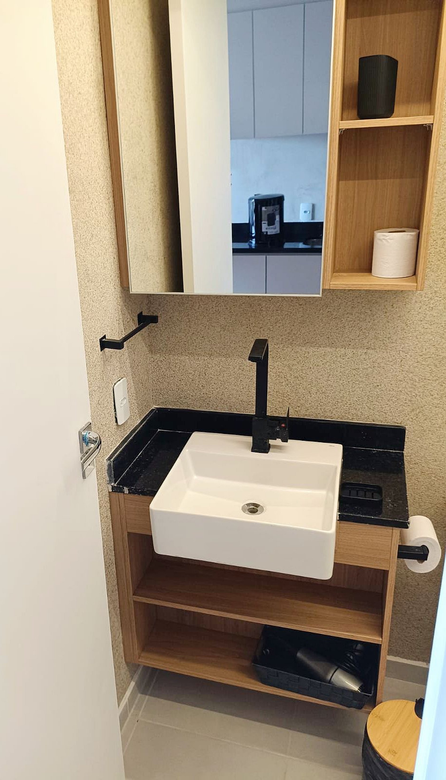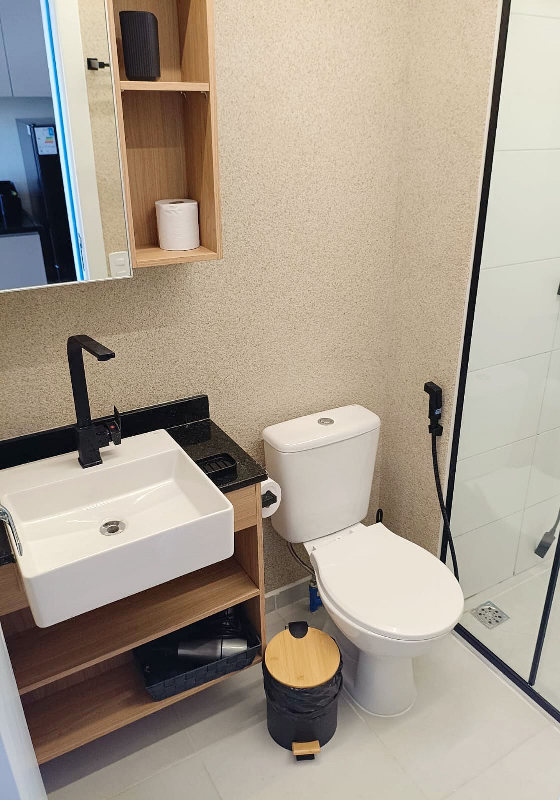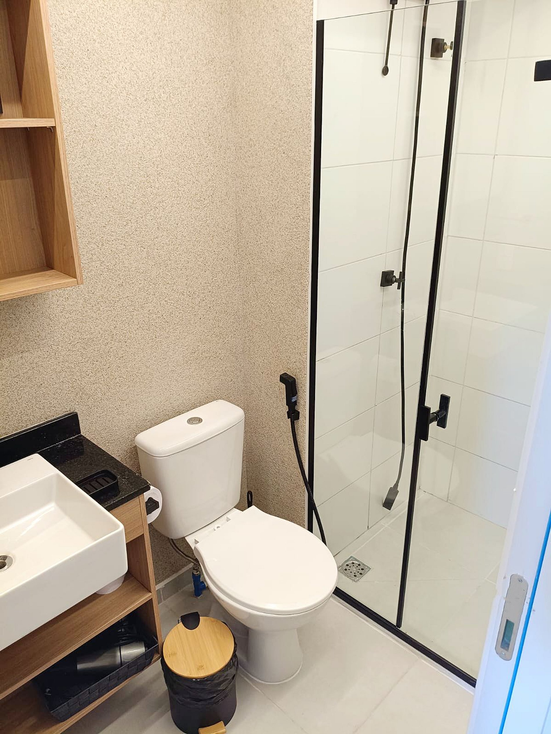 • Banheiro: Design sofisticado e ducha com sistema de alta pressão.