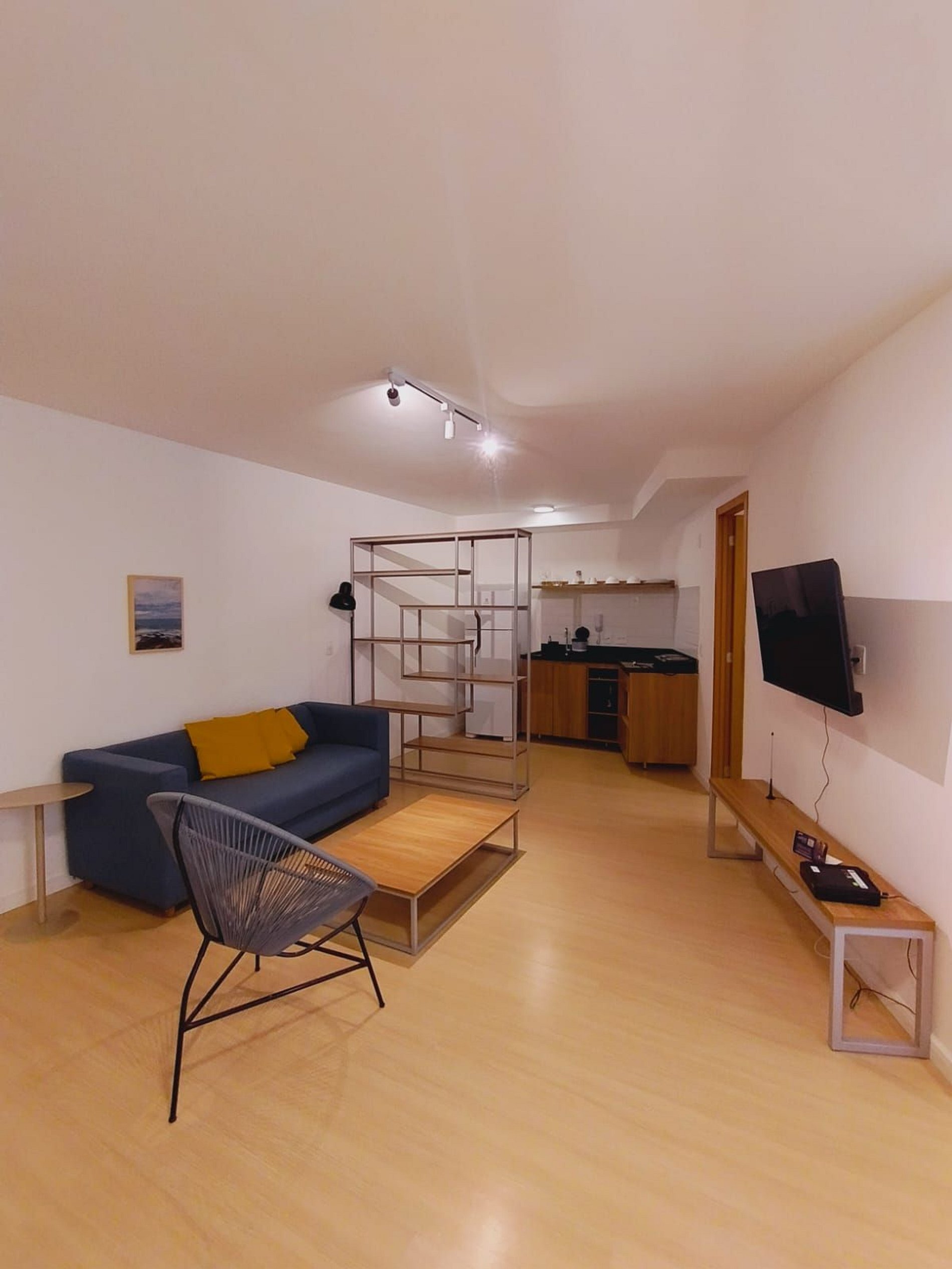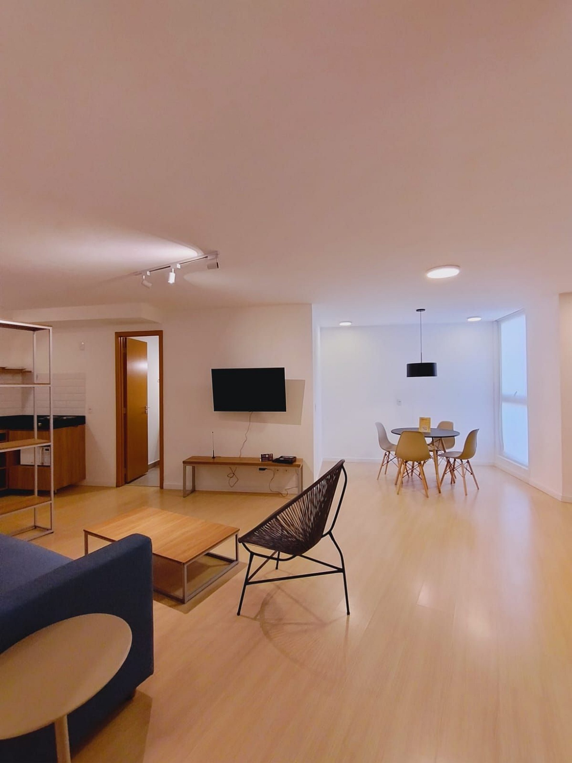 Conforto e sofisticação em um apartamento moderno,aconchegante, com maior espaço. Móveis elegantes, cozinha equipada, ar-condicionado. Localização tranquila, segura e com portaria 24h. Perfeito para uma estadia prática e confortável.