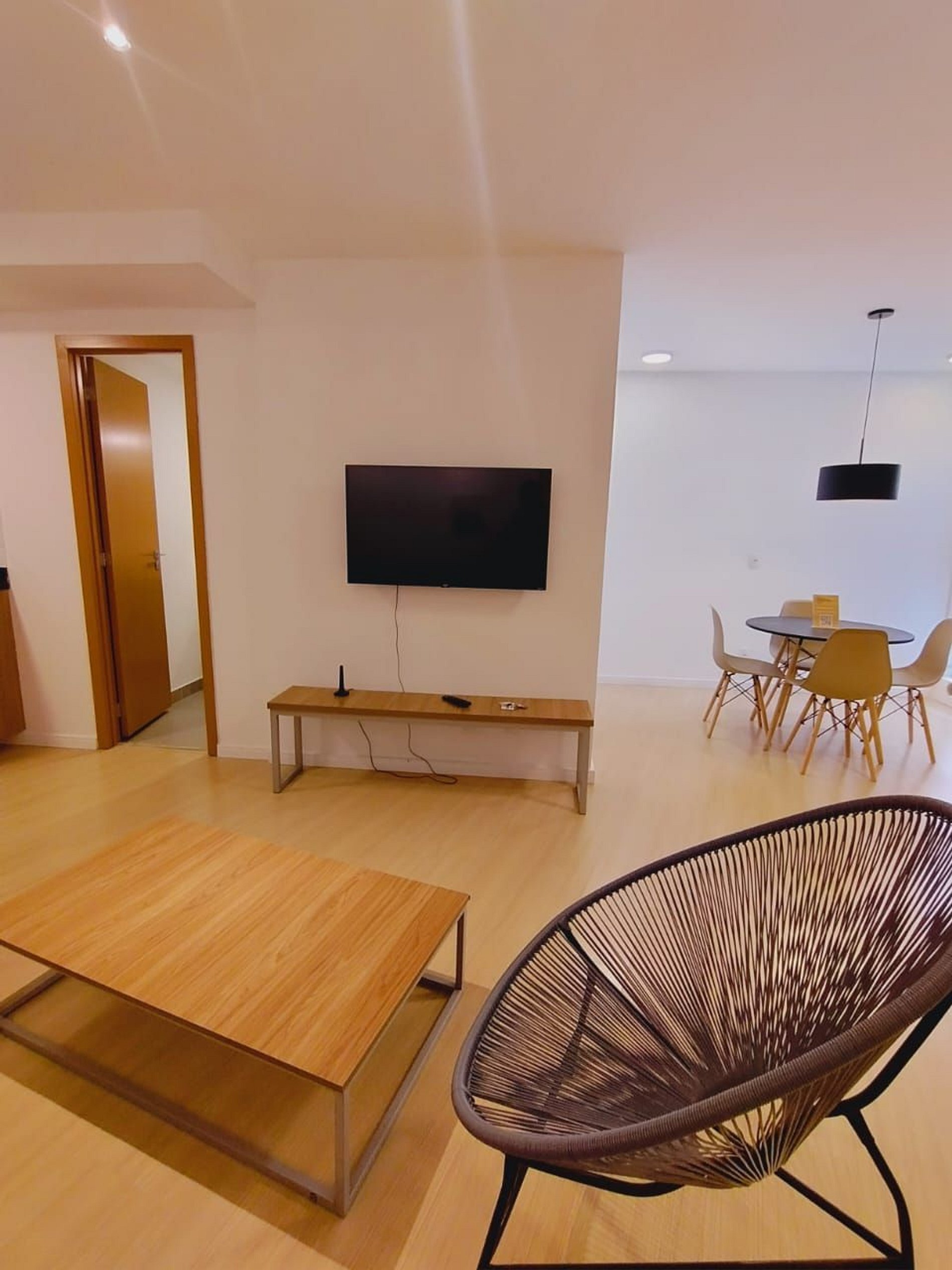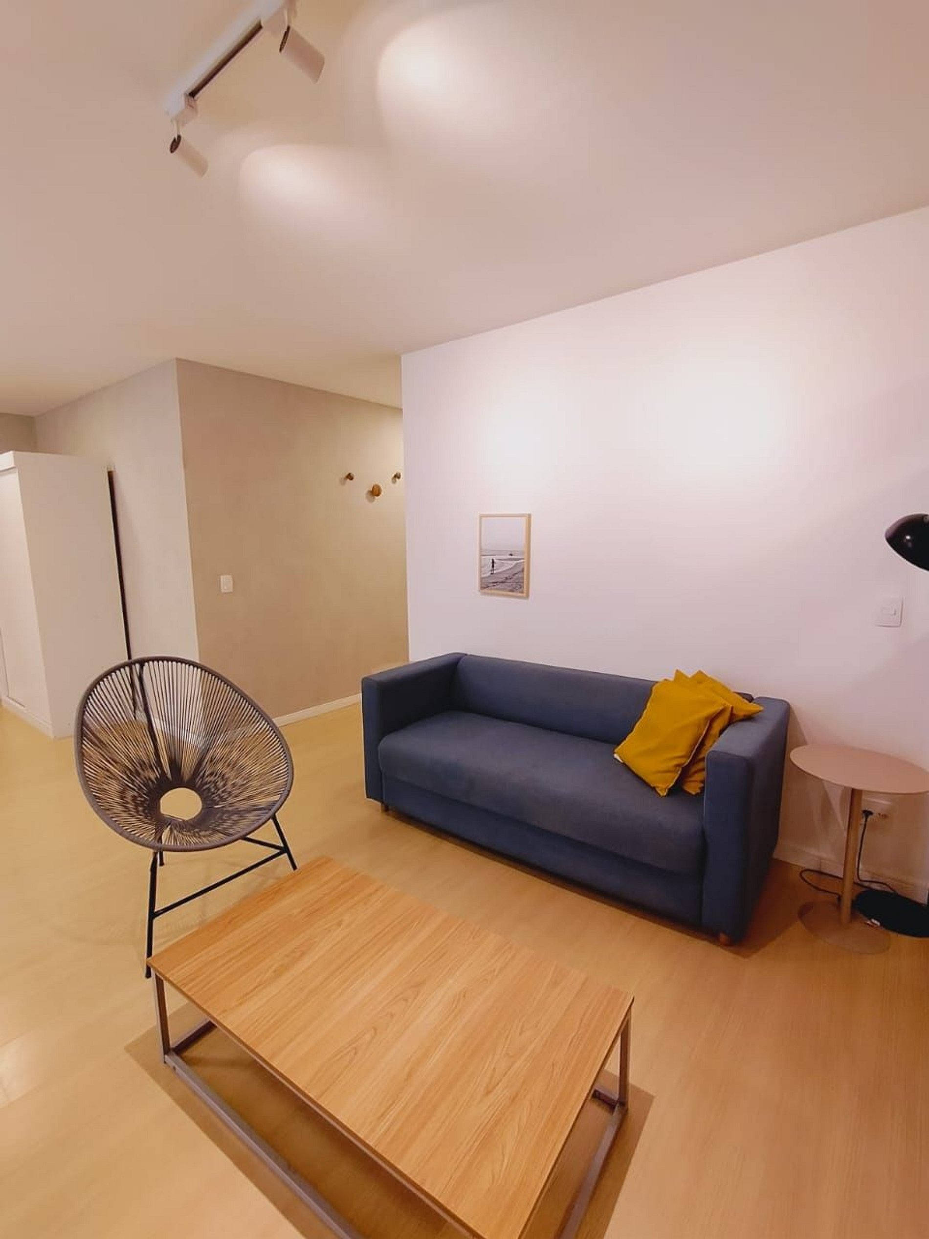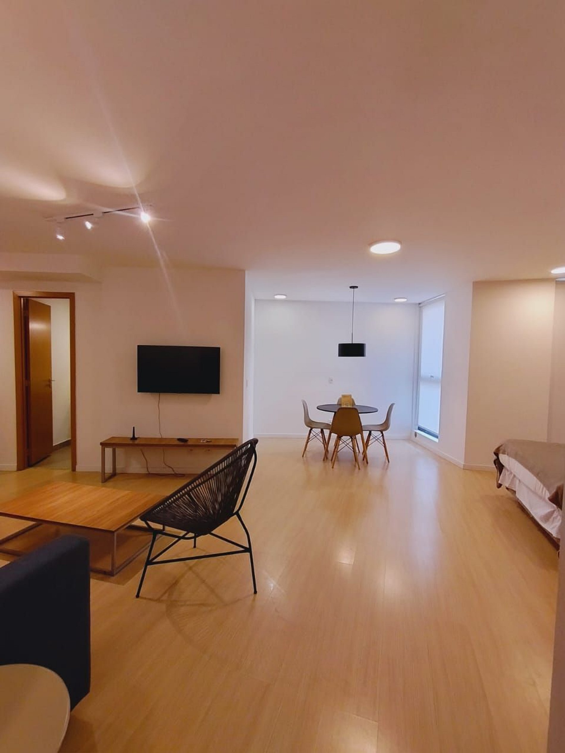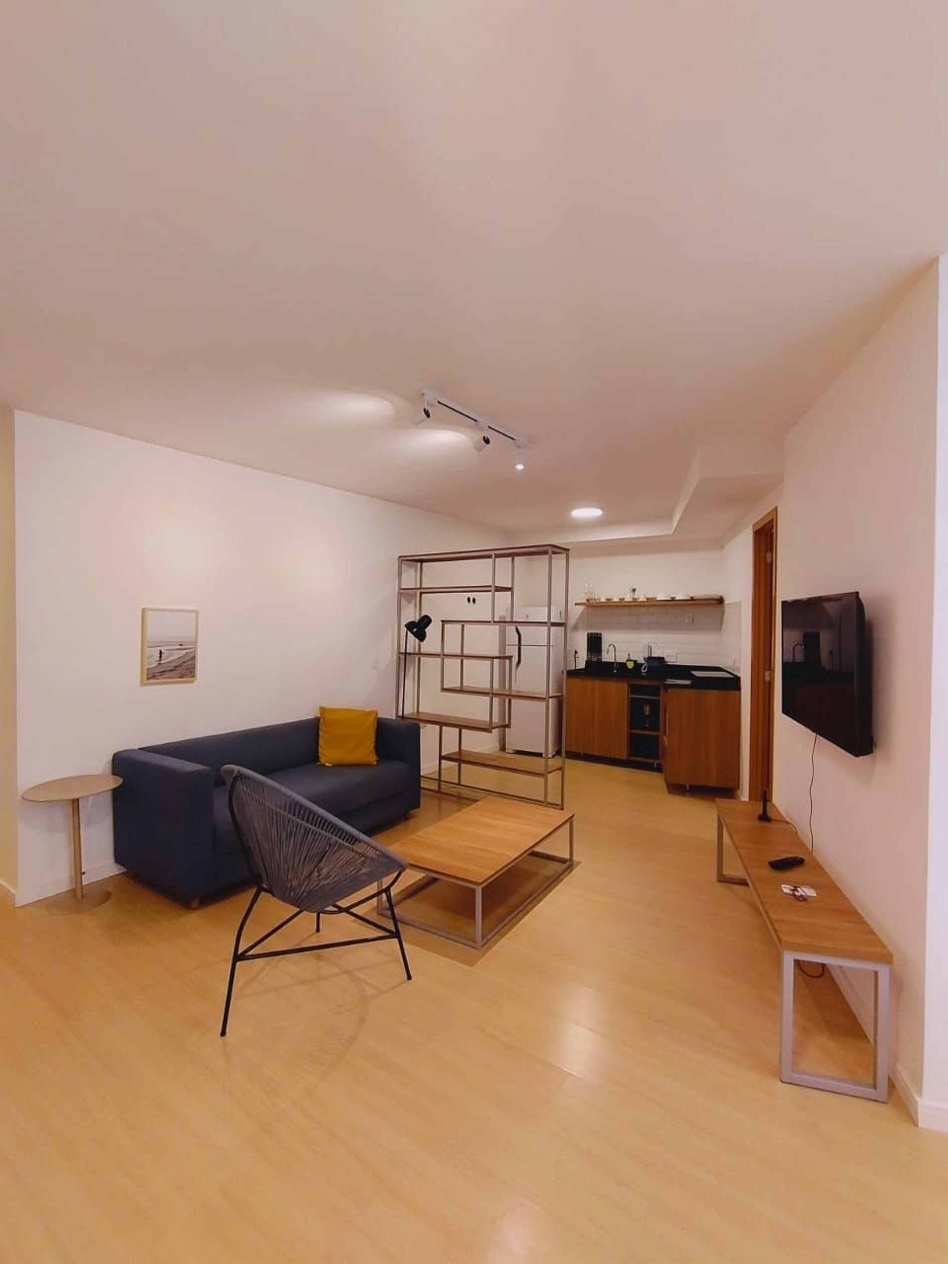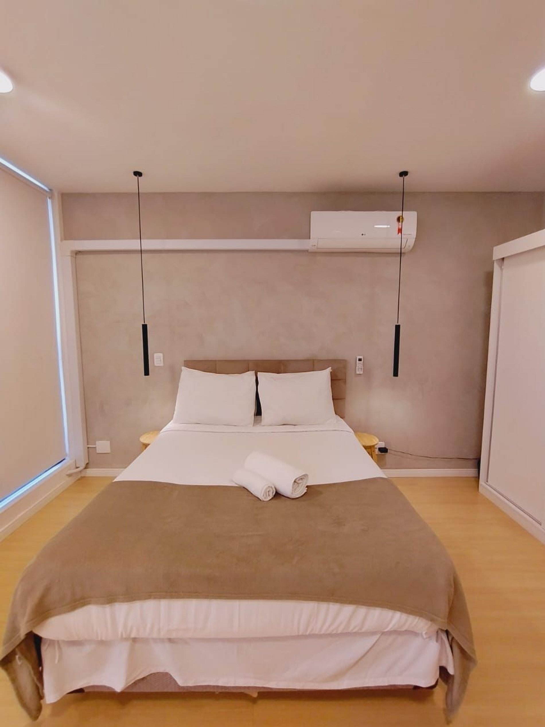 Studio com muito espaço, conforto e sofisticação em um apartamento moderno e aconchegante. Móveis elegantes, cozinha equipada, ar-condicionado. Localização tranquila, segura e com portaria 24h. Perfeito para uma estadia prática e confortável.