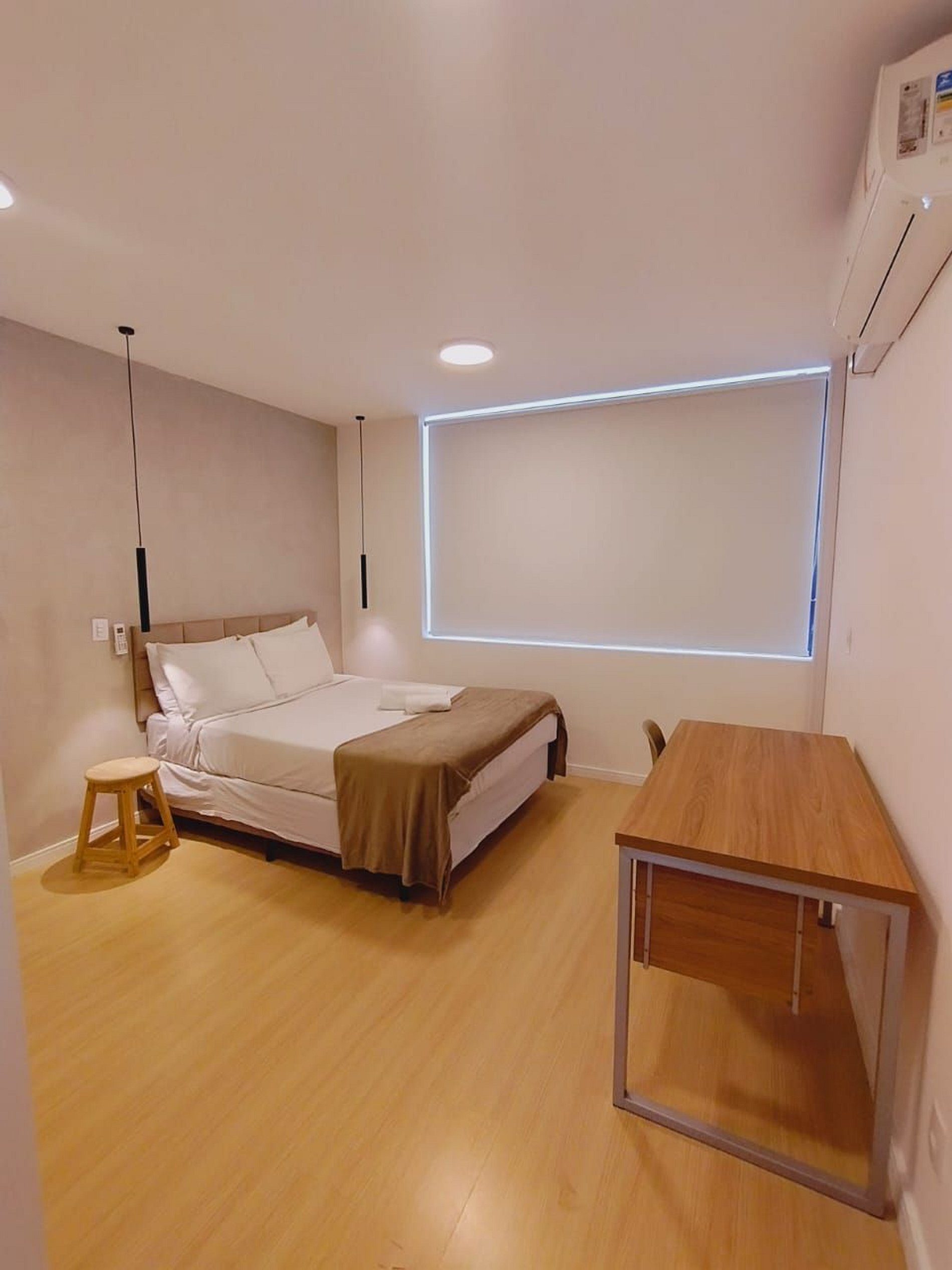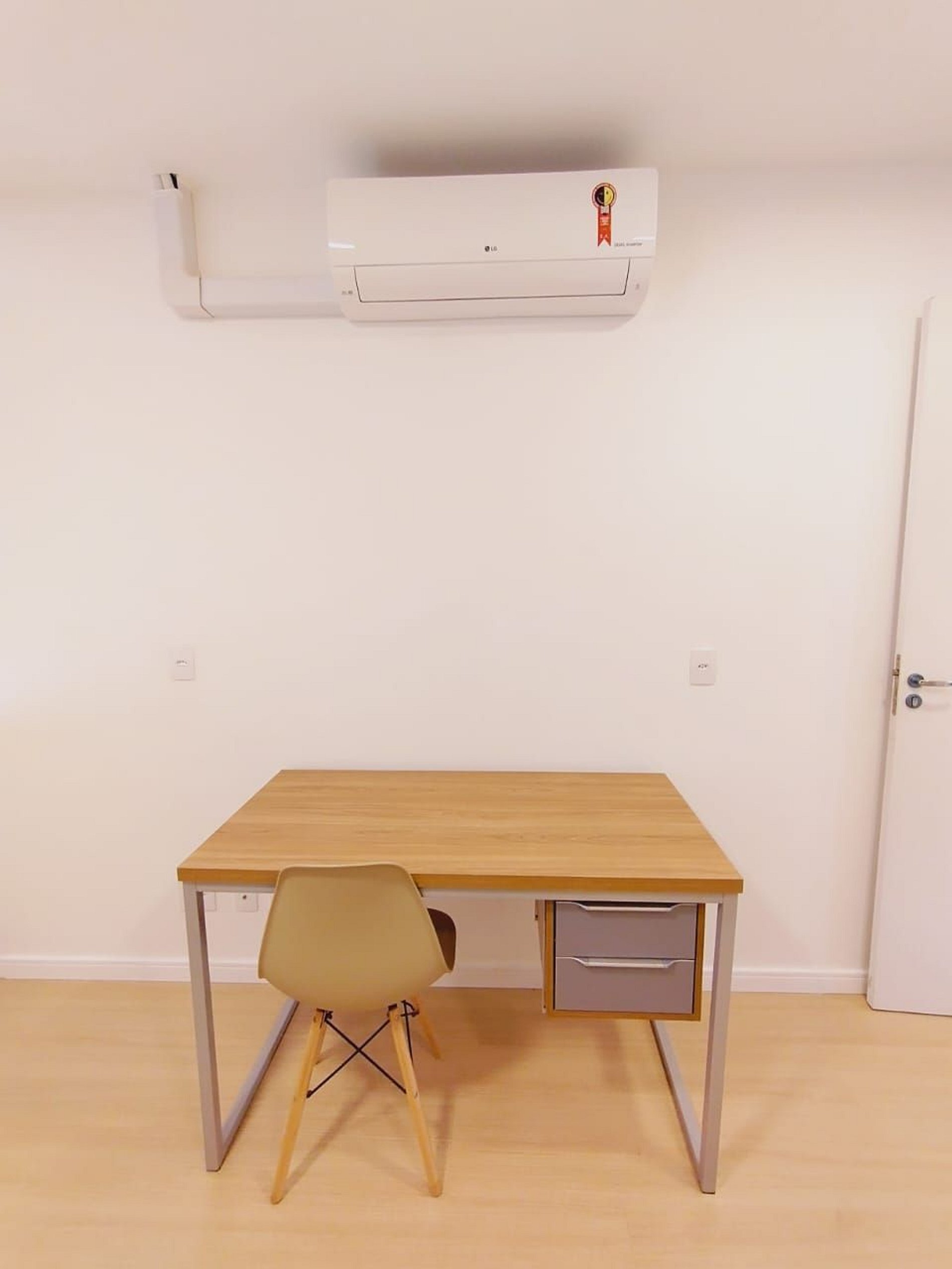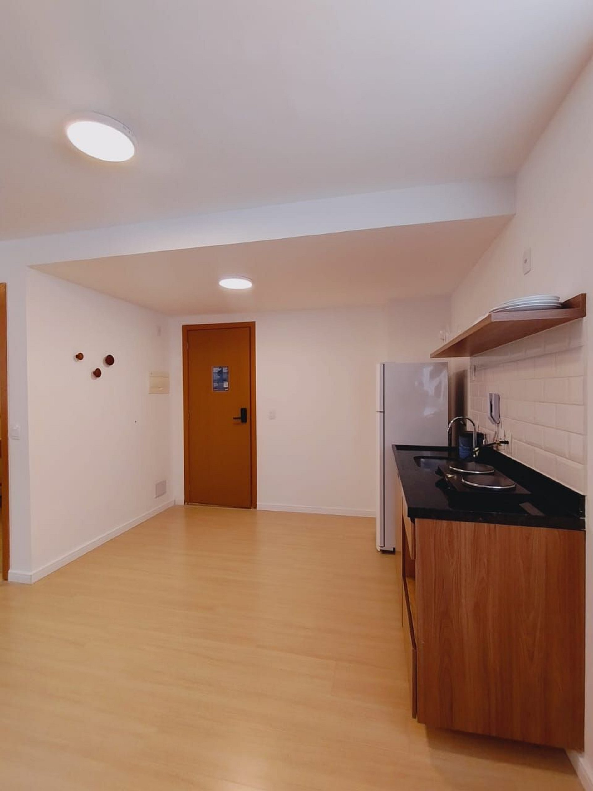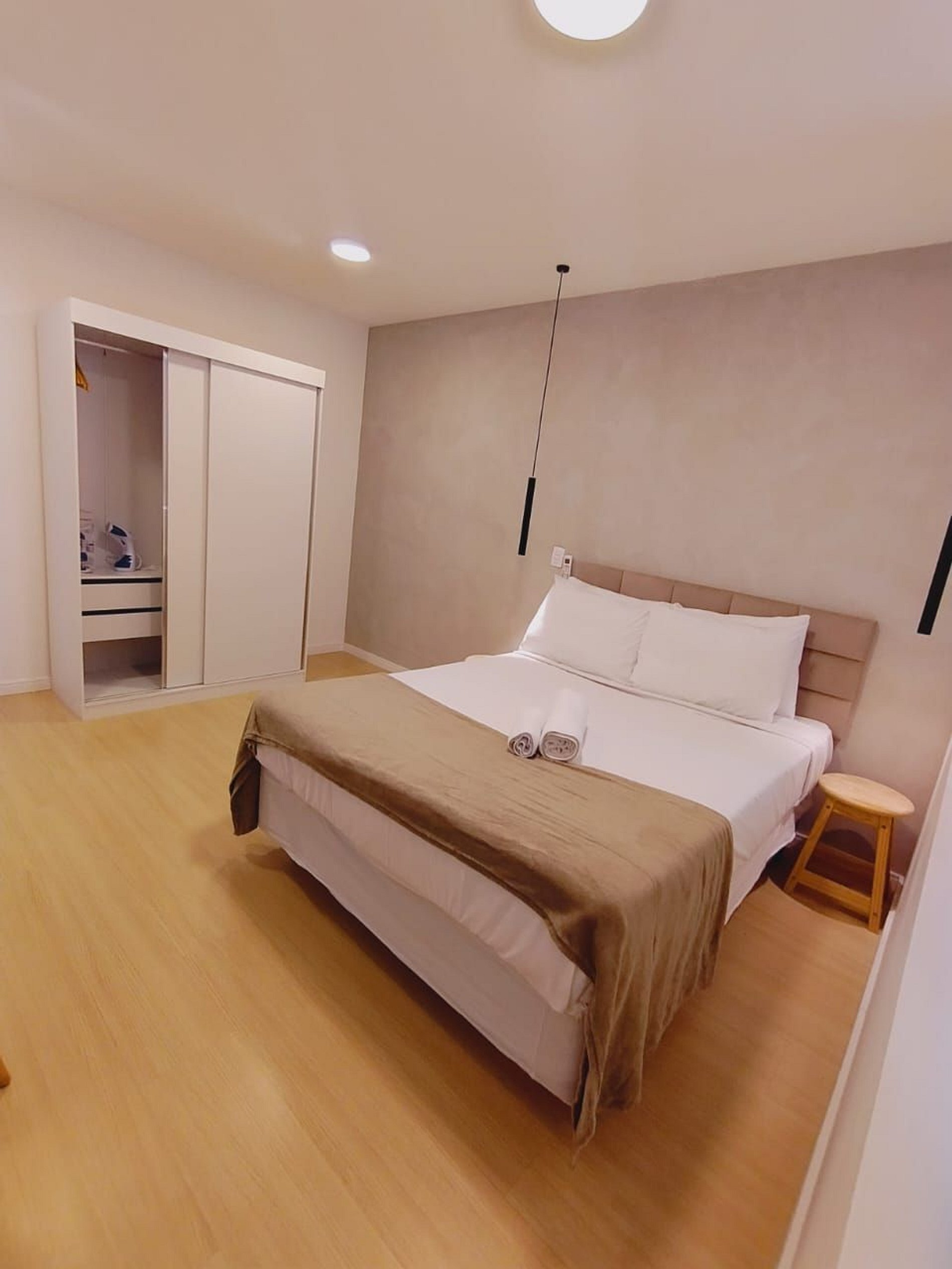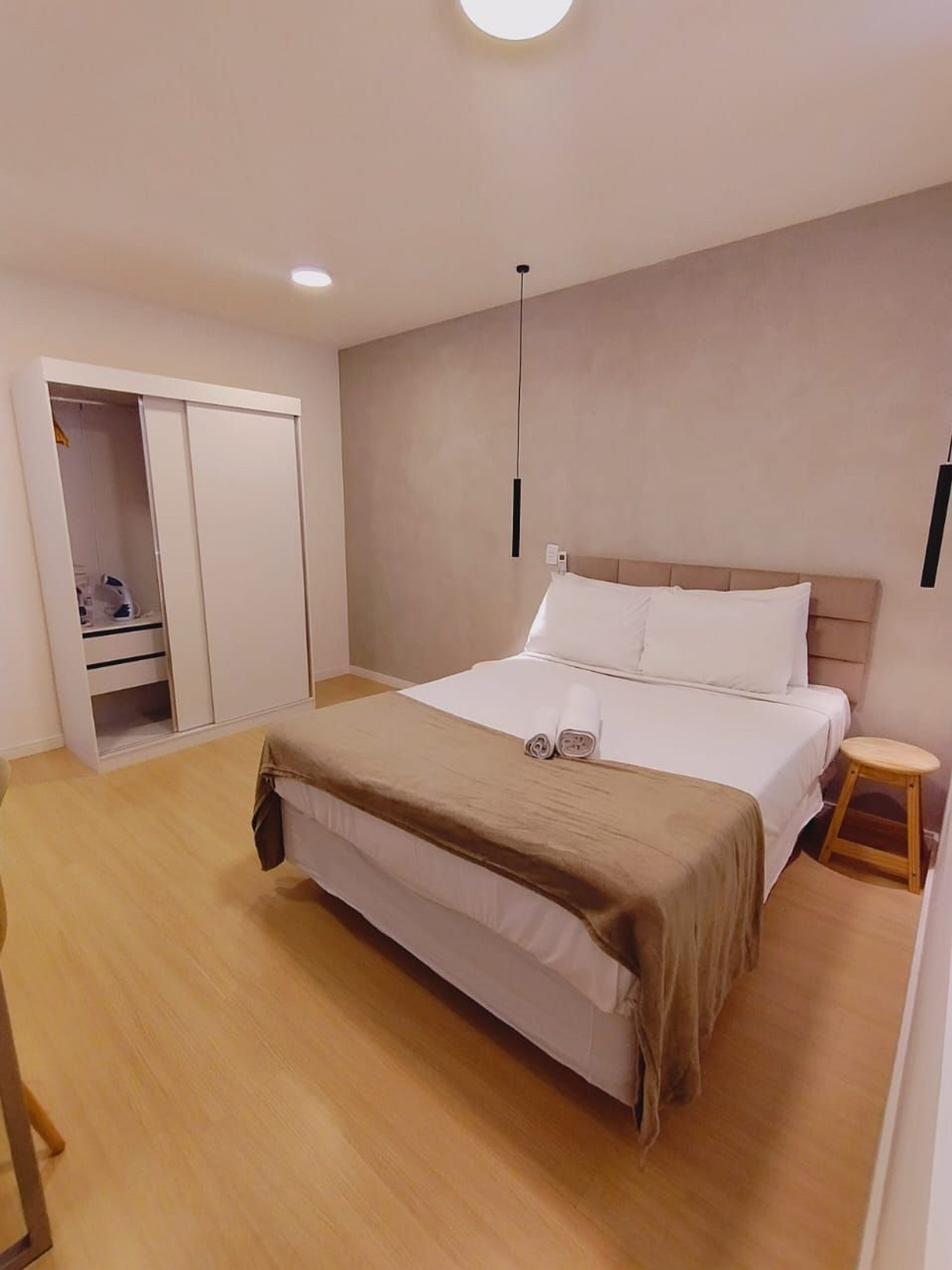 Apartamento de 1 dormitório com muito espaço, conforto e sofisticação em um apartamento moderno e aconchegante. Móveis elegantes, cozinha equipada, ar-condicionado. Localização tranquila, segura e com portaria 24h. Perfeito para uma estadia prática e confortável.