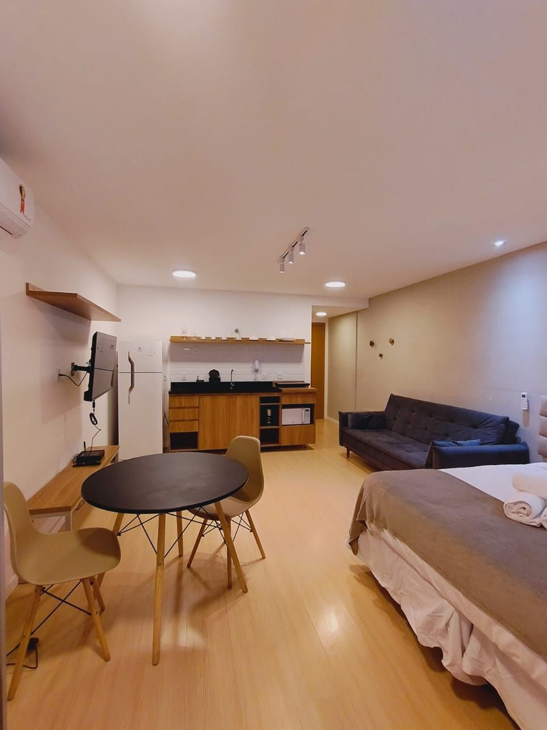 Conforto e sofisticação em um apartamento moderno e aconchegante. Móveis elegantes, cozinha equipada, Smart TV, ar-condicionado e Wi-Fi de alta velocidade. Localização tranquila, segura e com portaria 24h. Perfeito para uma estadia prática e confortável.
