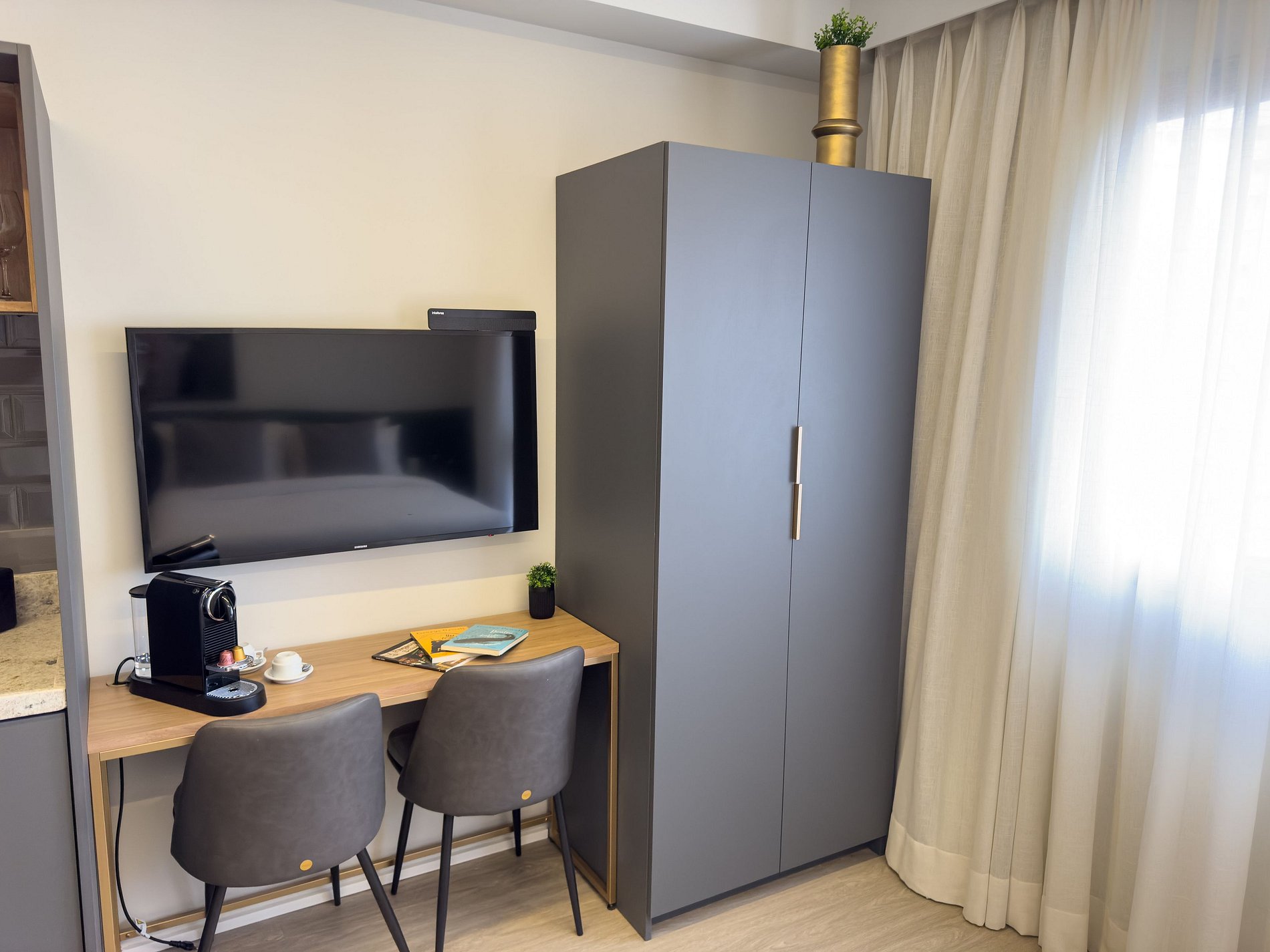 Nossos studios foi pensado para quem não abre mão de estilo, conforto e praticidade. Imagine um lugar onde o design contemporâneo encontra o aconchego de um lar, criando o cenário perfeito para sua viagem a São Paulo.