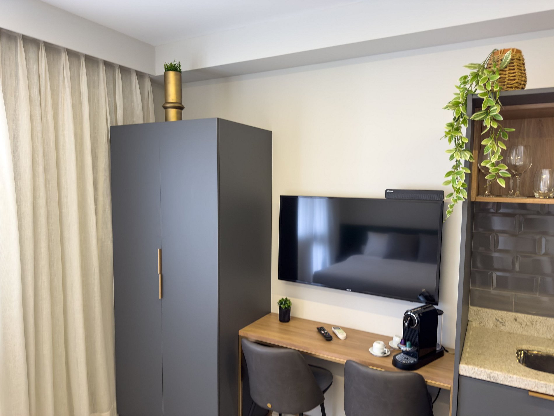 Nossos studios foi pensado para quem não abre mão de estilo, conforto e praticidade. Imagine um lugar onde o design contemporâneo encontra o aconchego de um lar, criando o cenário perfeito para sua viagem a São Paulo.