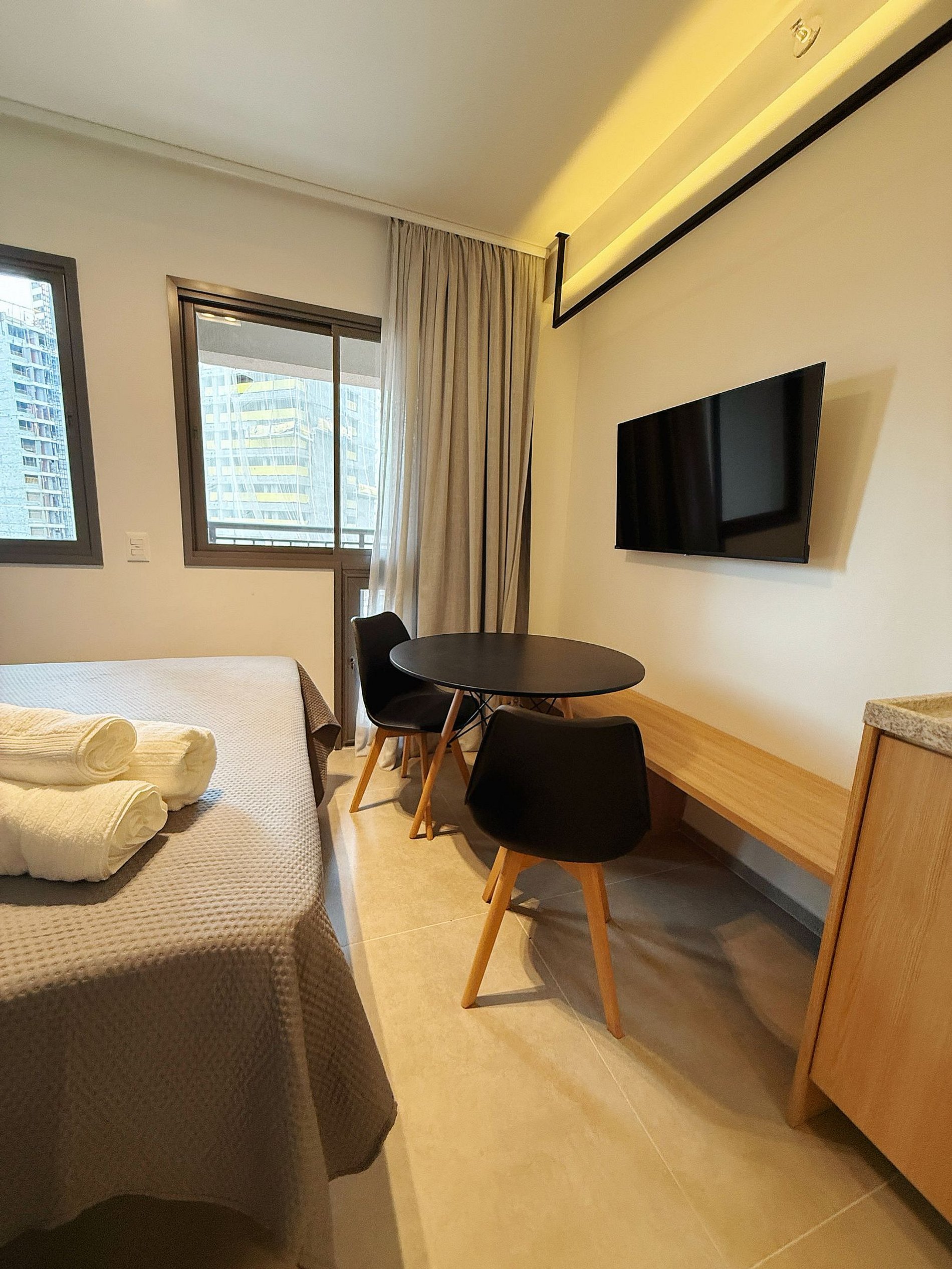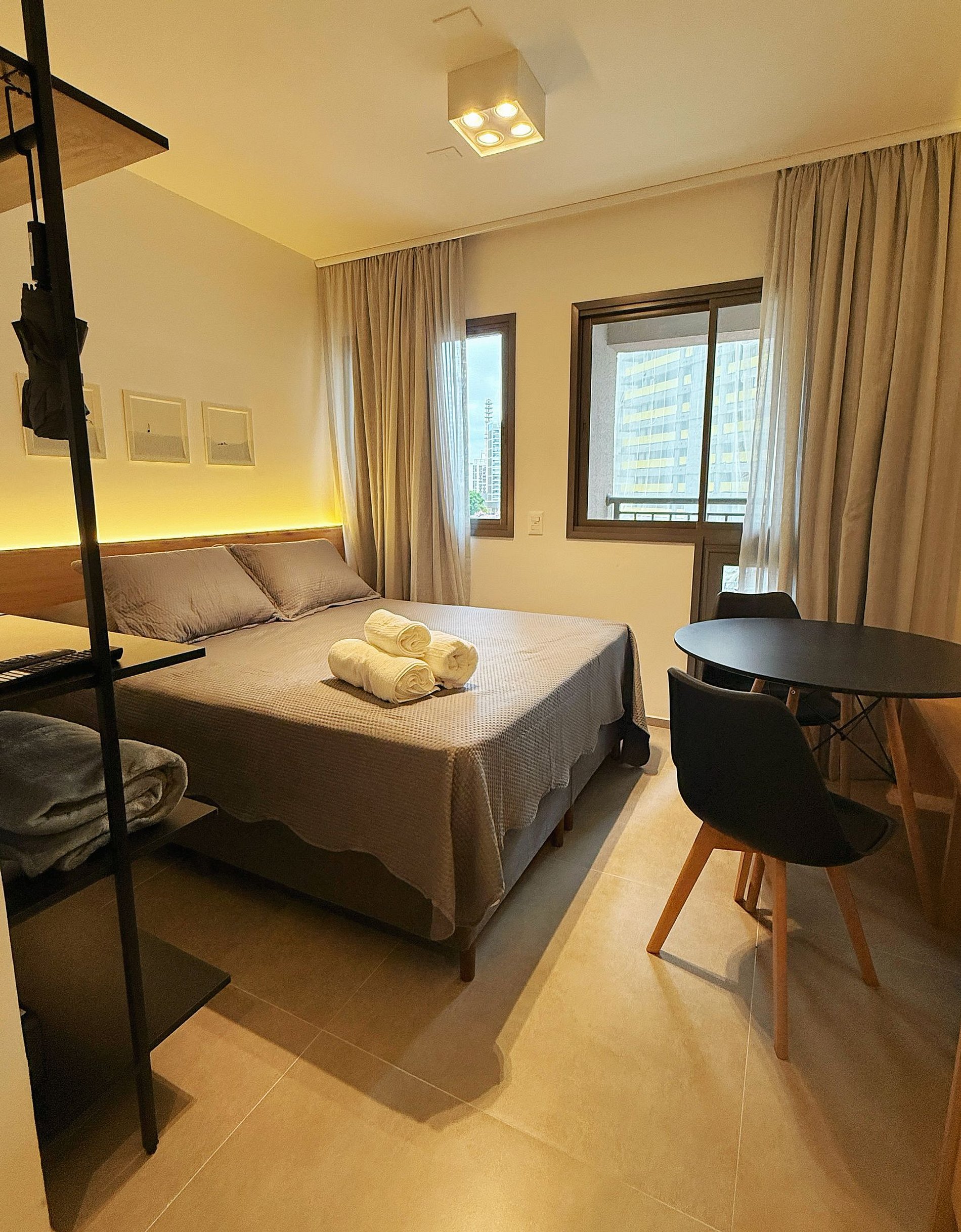 Nossos studios foi pensado para quem não abre mão de estilo, conforto e praticidade. Imagine um lugar onde o design contemporâneo encontra o aconchego de um lar, criando o cenário perfeito para sua viagem a São Paulo.