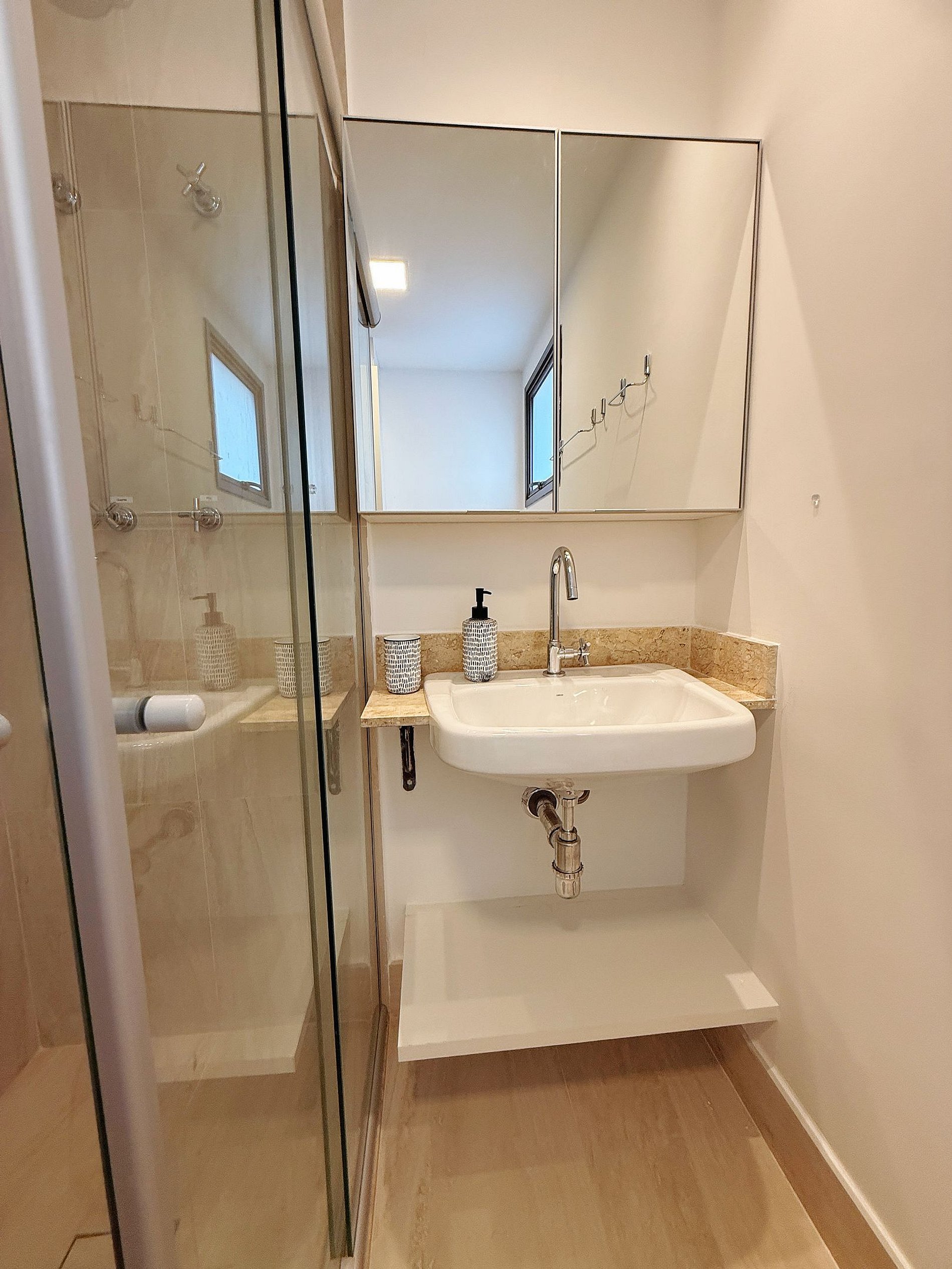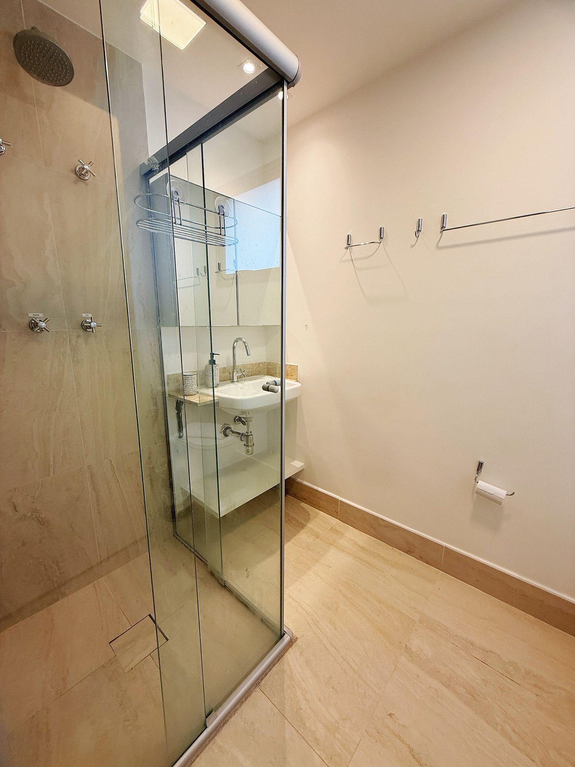 • Banheiro: Design sofisticado e ducha com sistema de alta pressão.
