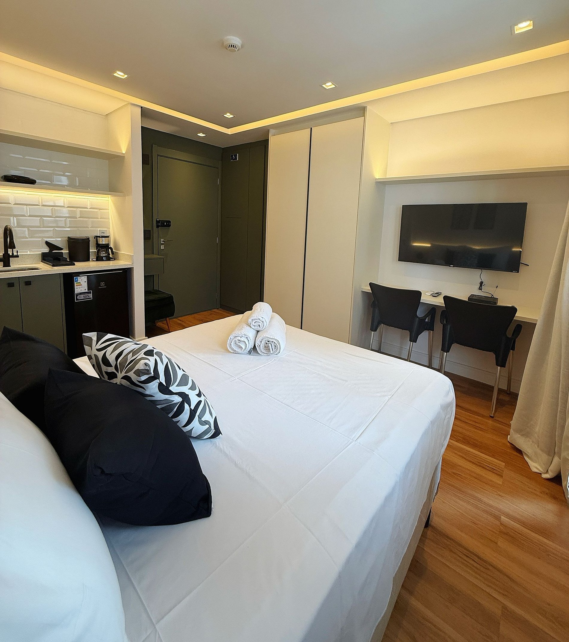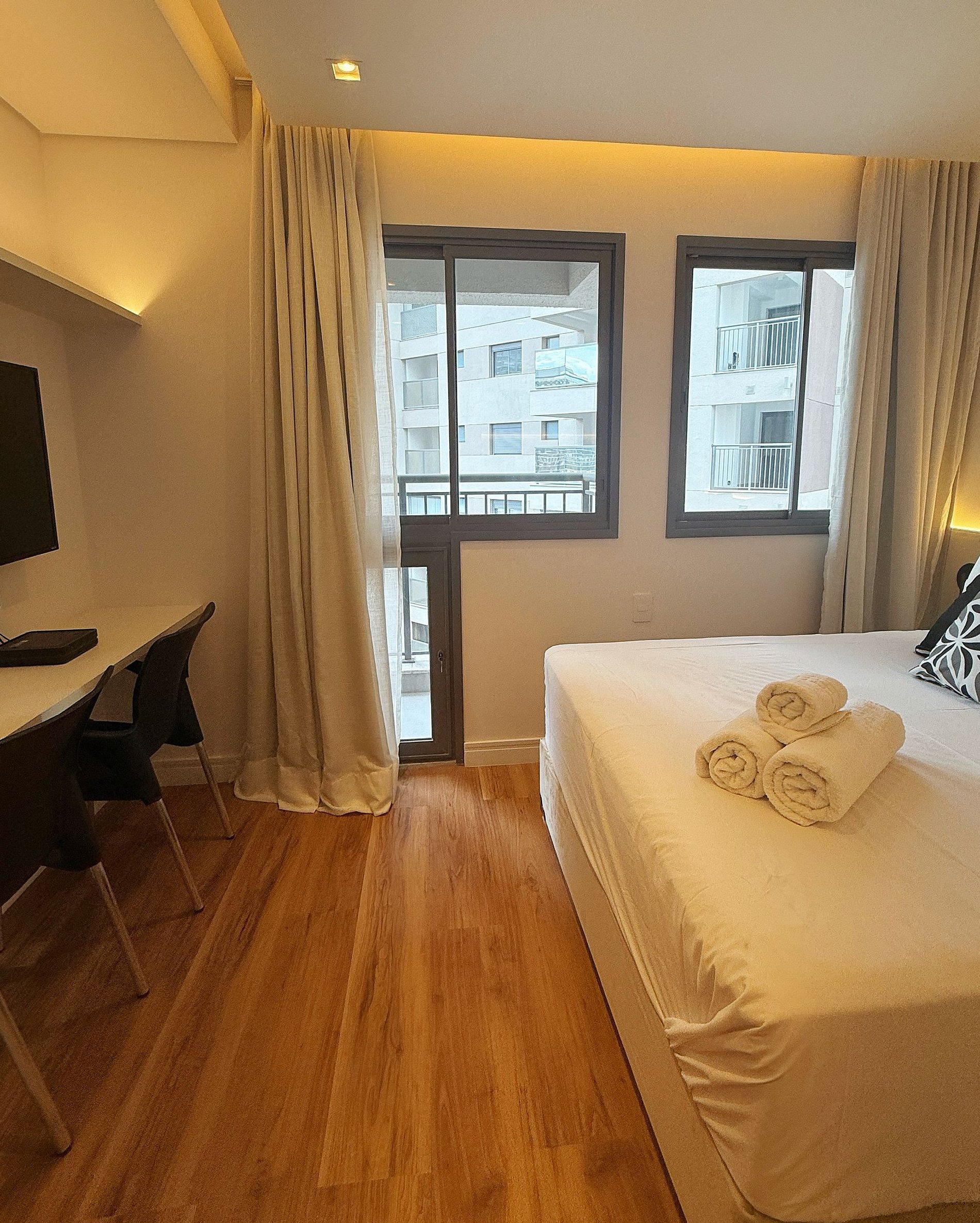 Nossos studios foi pensado para quem não abre mão de estilo, conforto e praticidade. Imagine um lugar onde o design contemporâneo encontra o aconchego de um lar, criando o cenário perfeito para sua viagem a São Paulo.