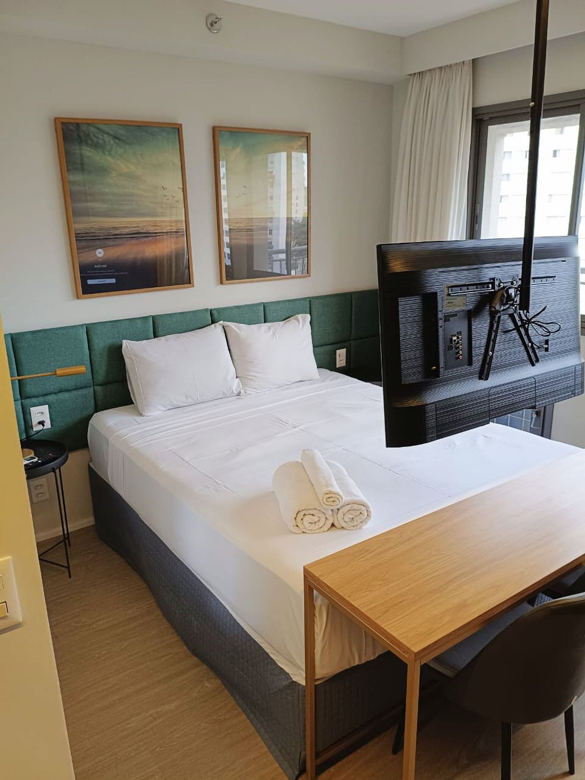 Nossos studios foi pensado para quem não abre mão de estilo, conforto e praticidade. Imagine um lugar onde o design contemporâneo encontra o aconchego de um lar, criando o cenário perfeito para sua viagem a São Paulo.