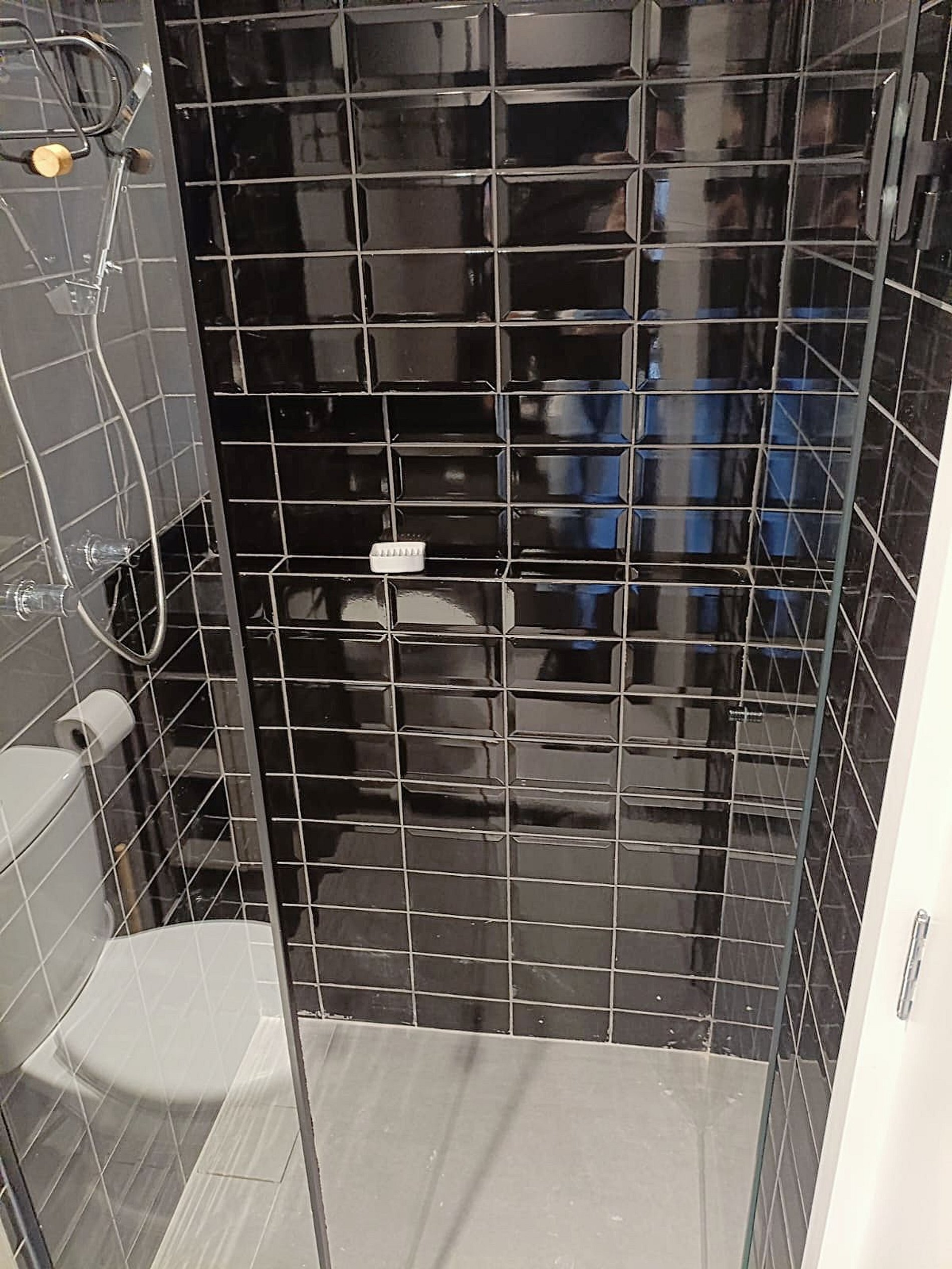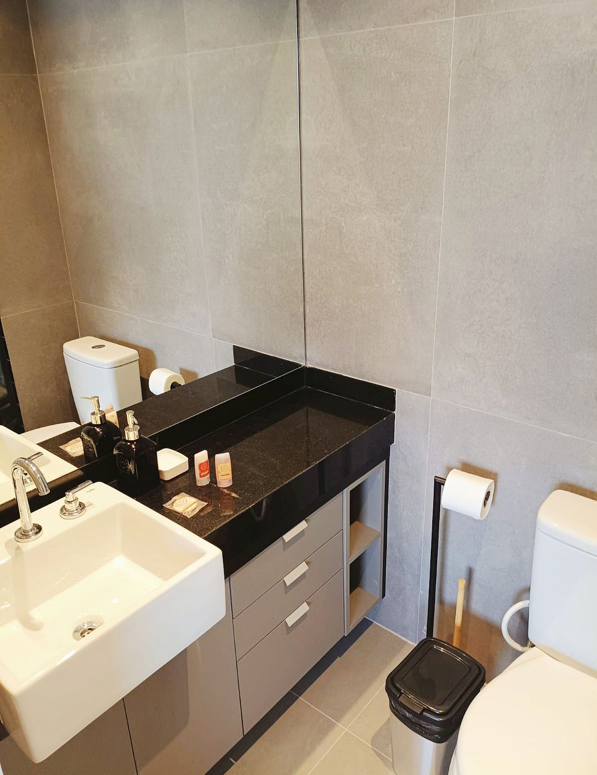 • Banheiro: Design sofisticado e ducha com sistema de alta pressão.