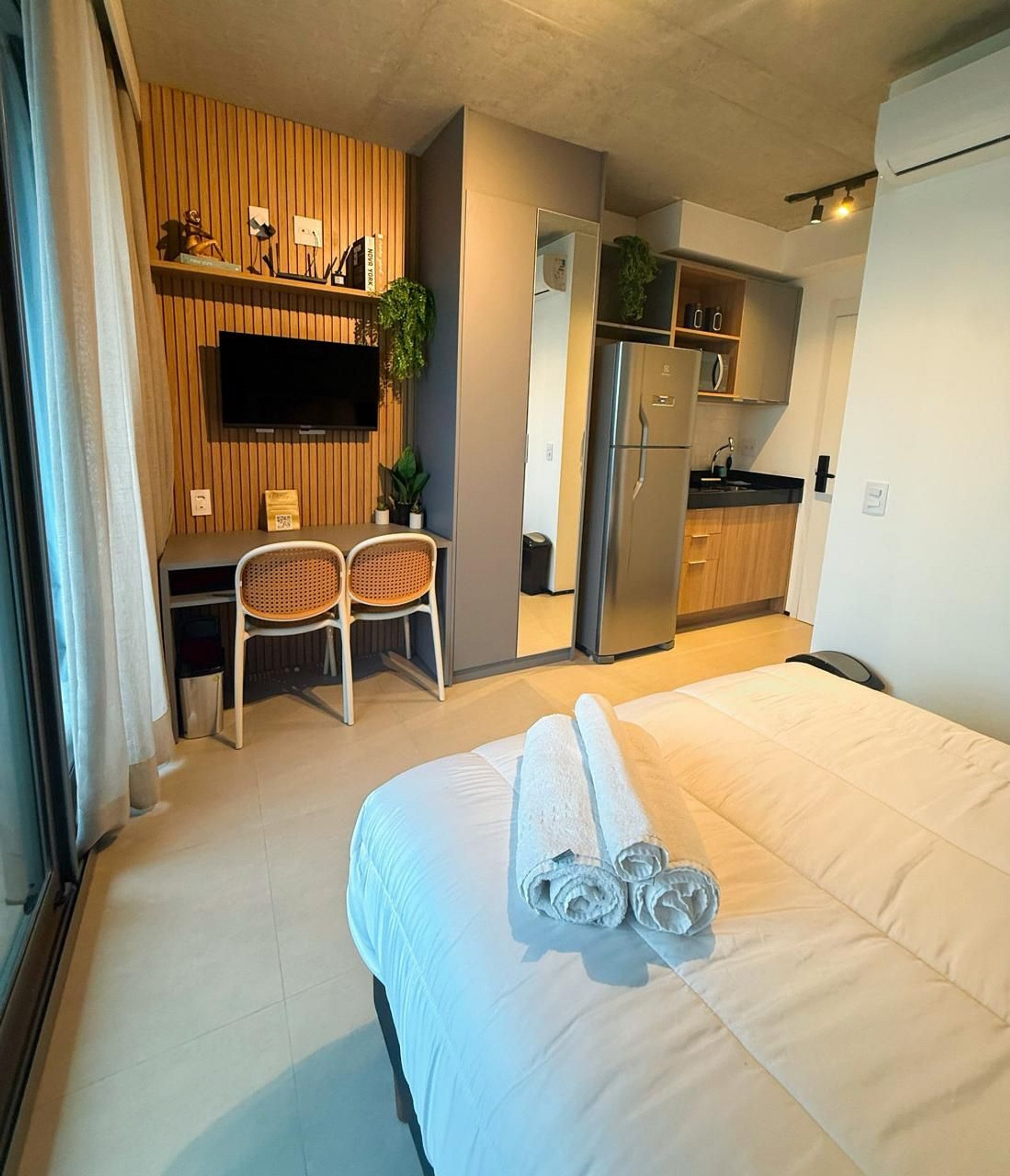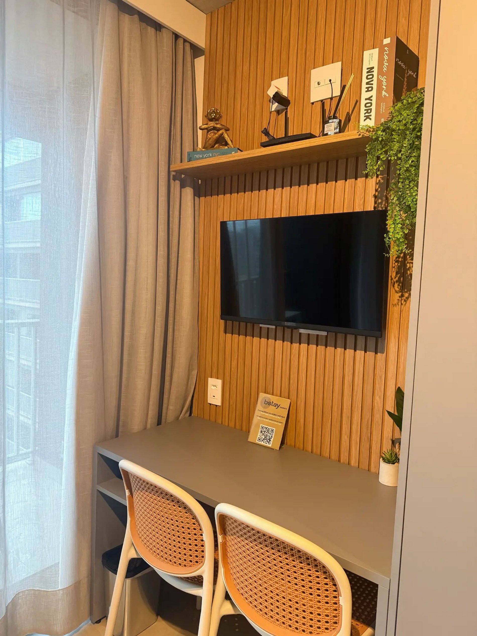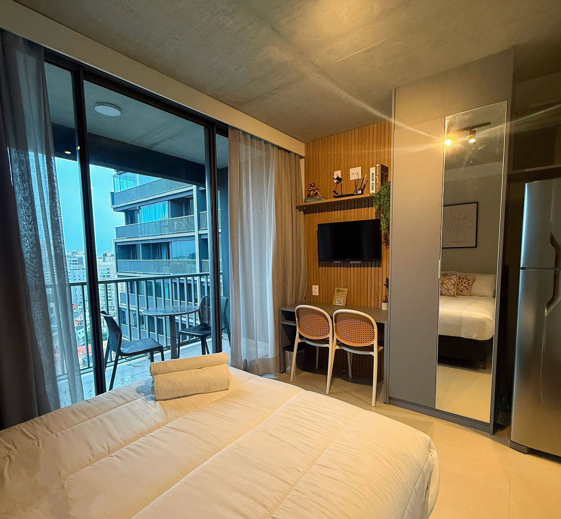 Nossos studios foi pensado para quem não abre mão de estilo, conforto e praticidade. Imagine um lugar onde o design contemporâneo encontra o aconchego de um lar, criando o cenário perfeito para sua viagem a São Paulo.
