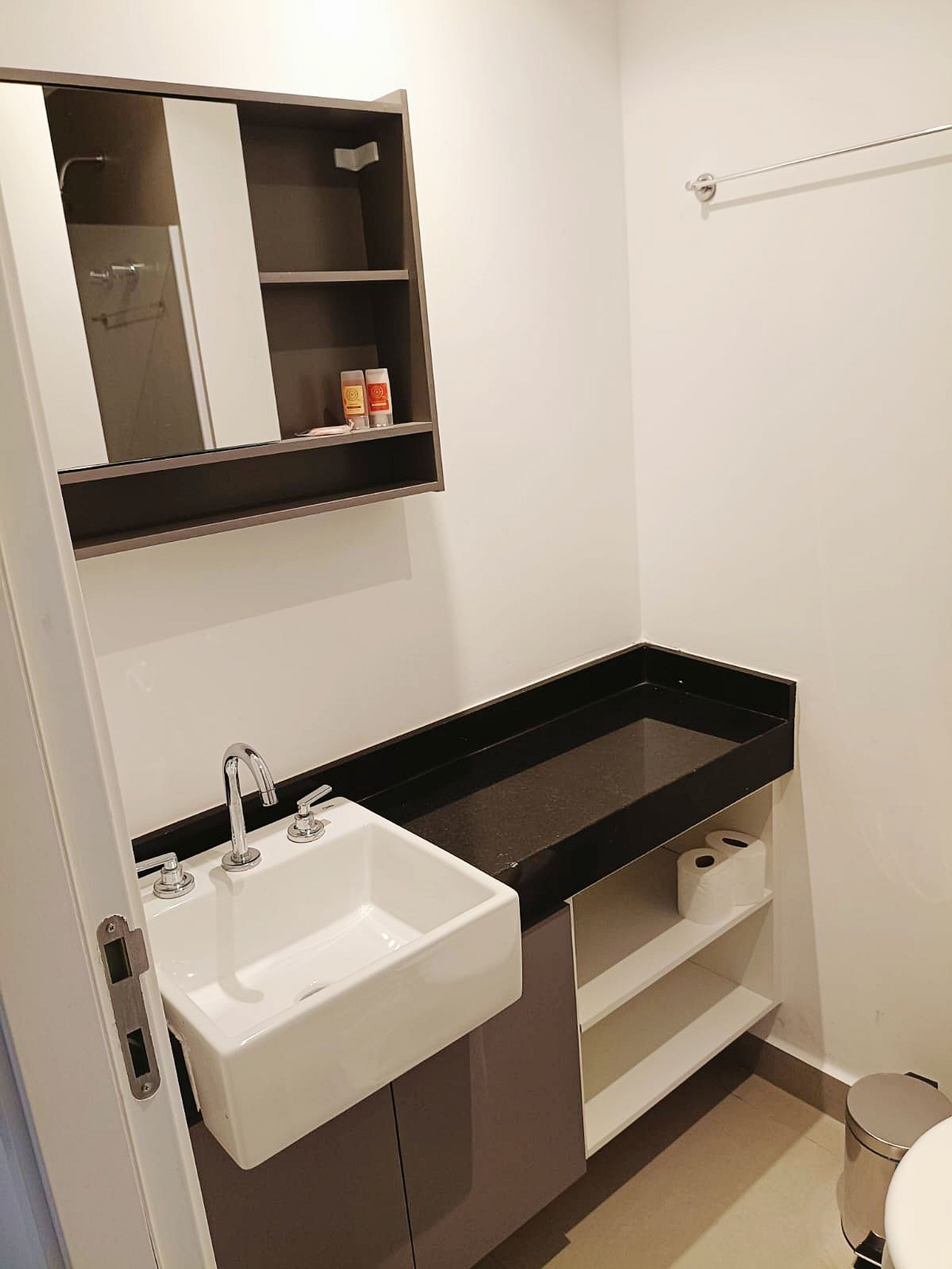 • Banheiro: Design sofisticado e ducha com sistema de alta pressão.