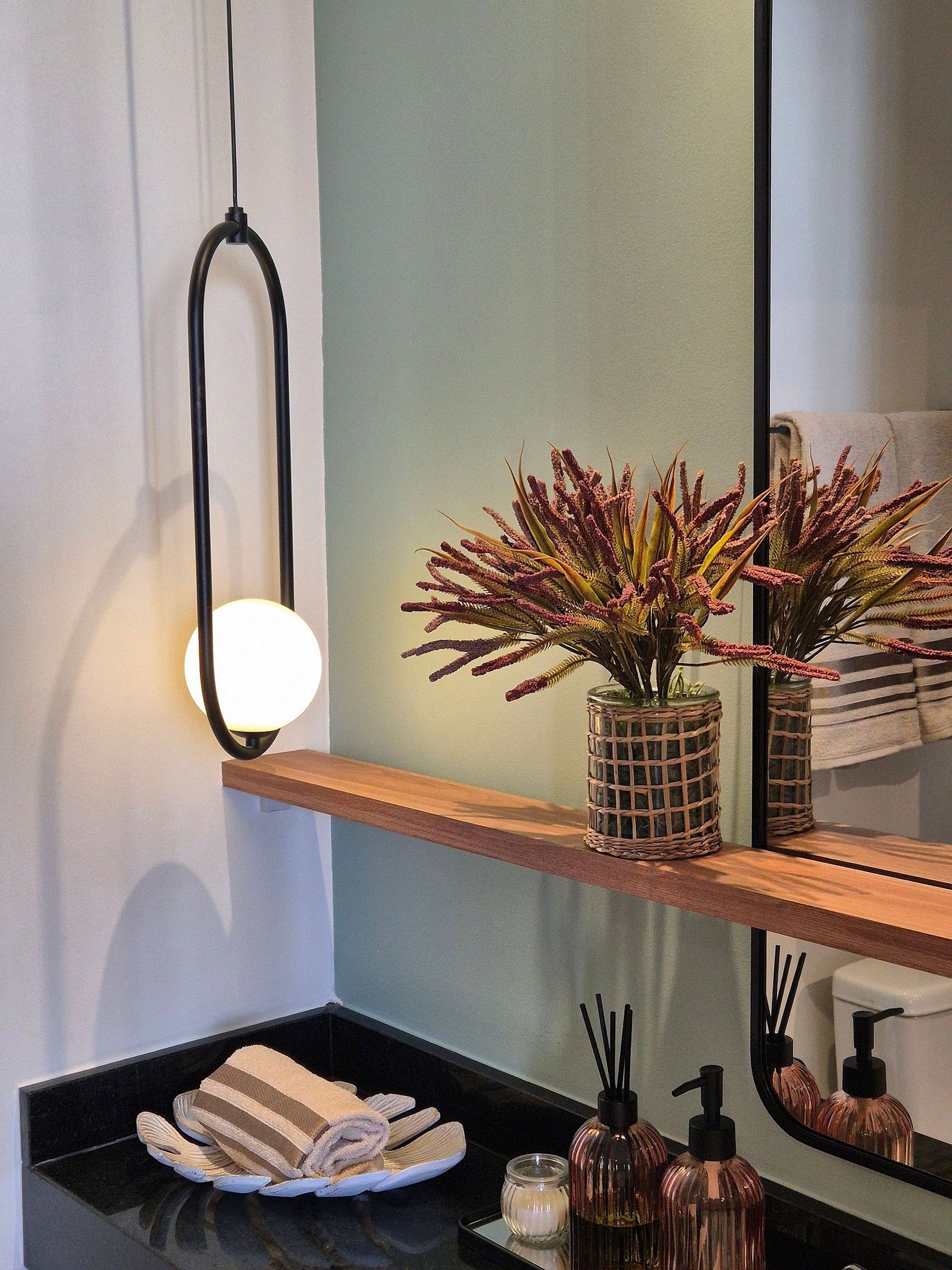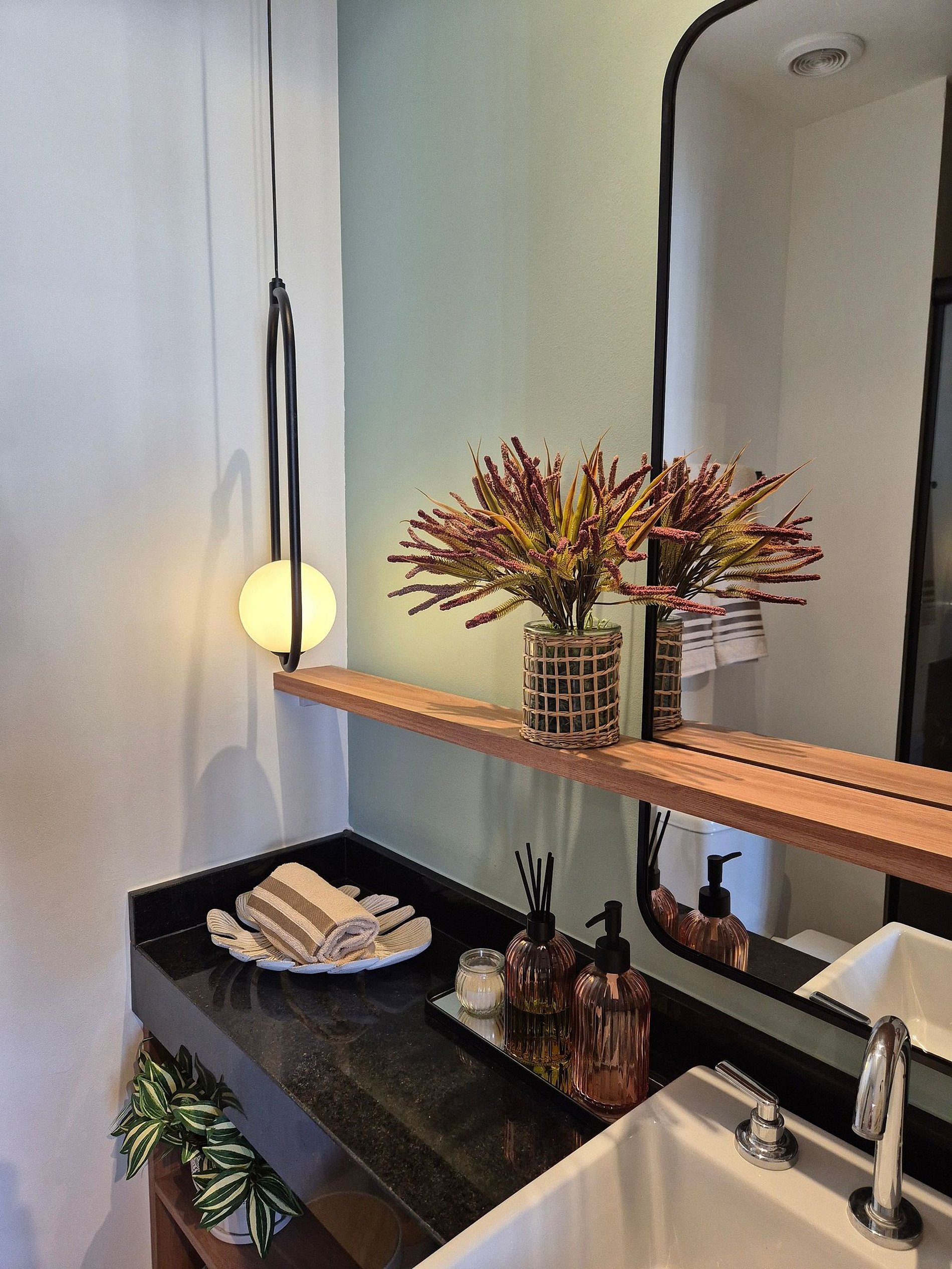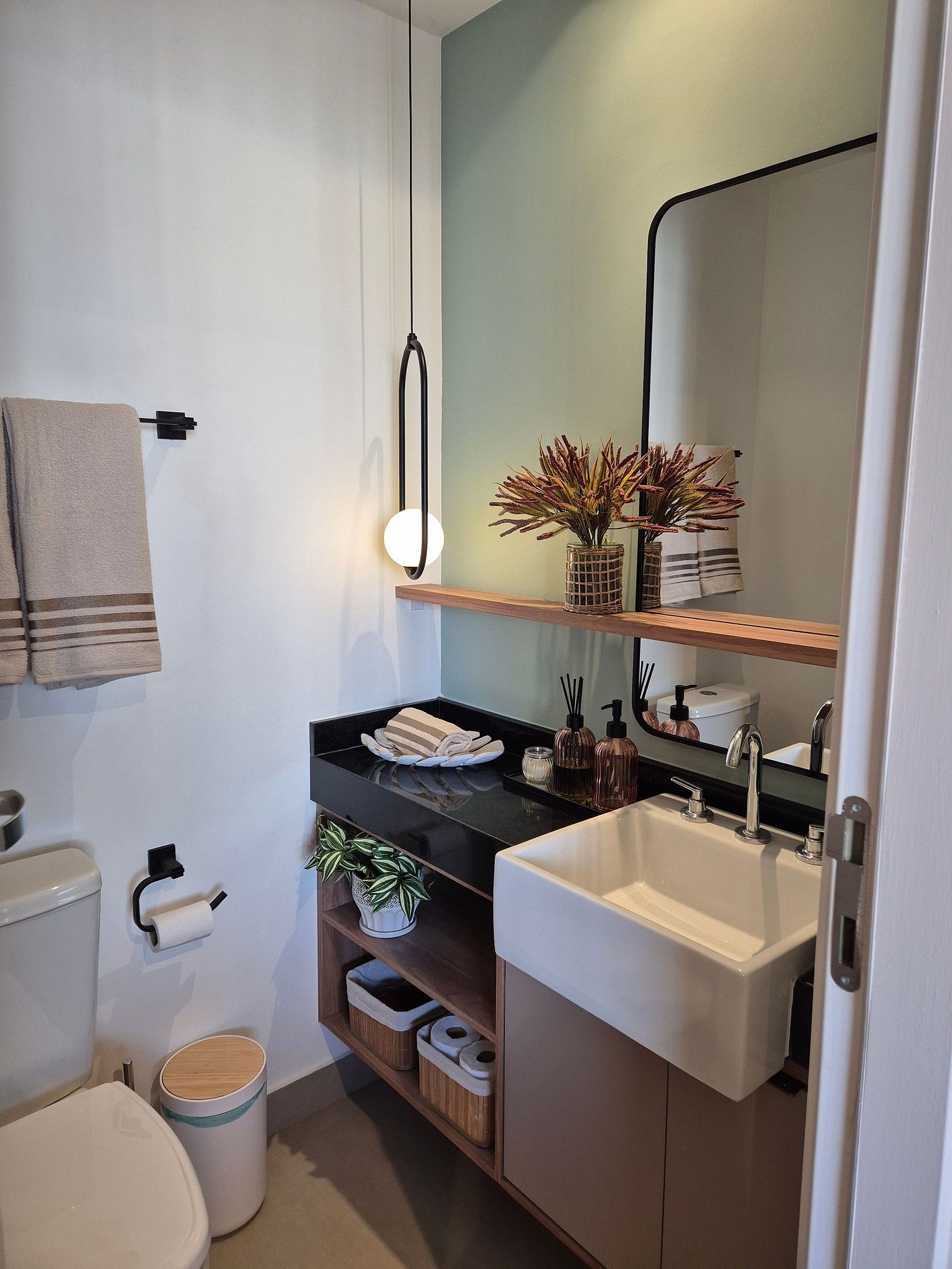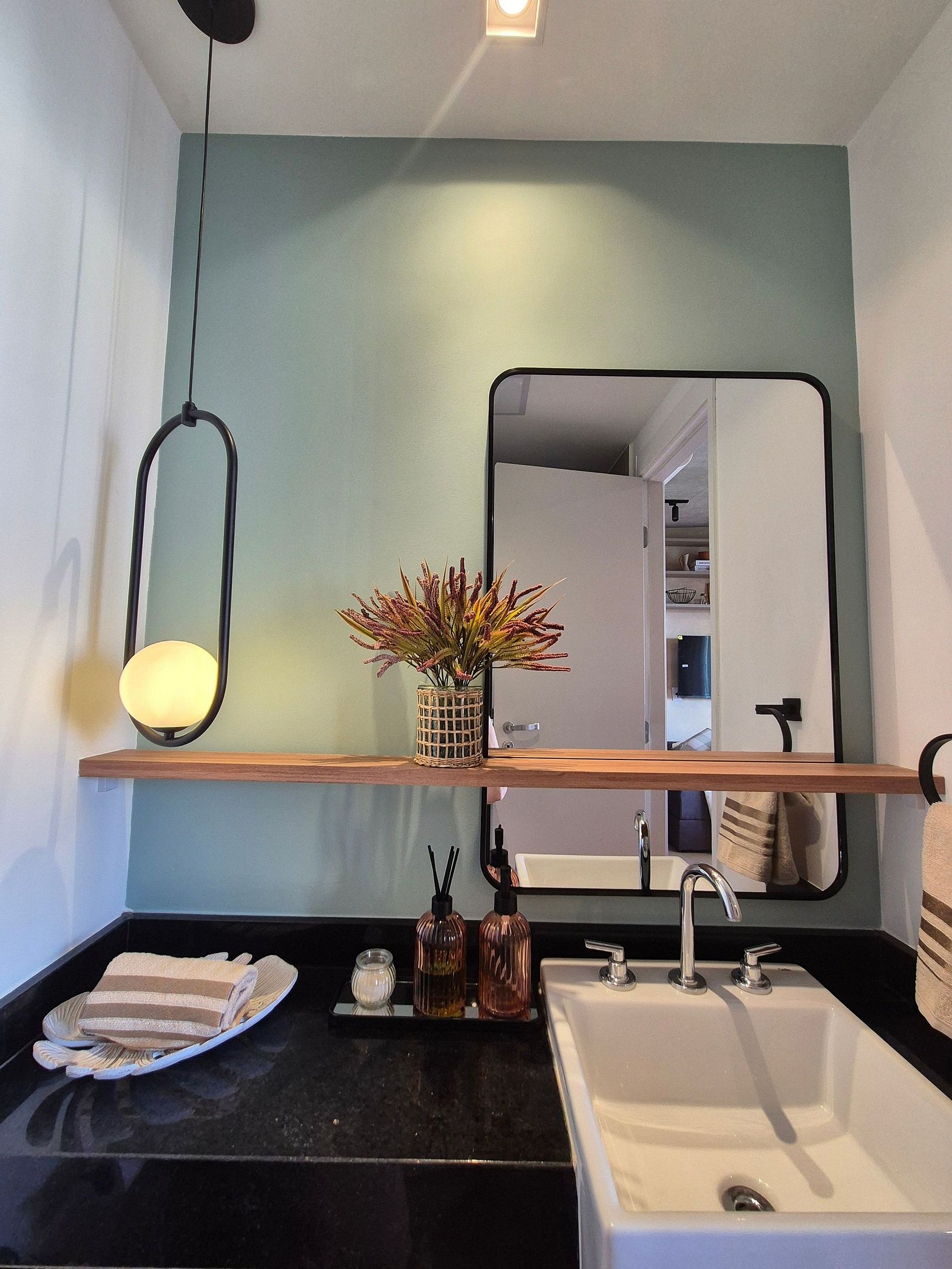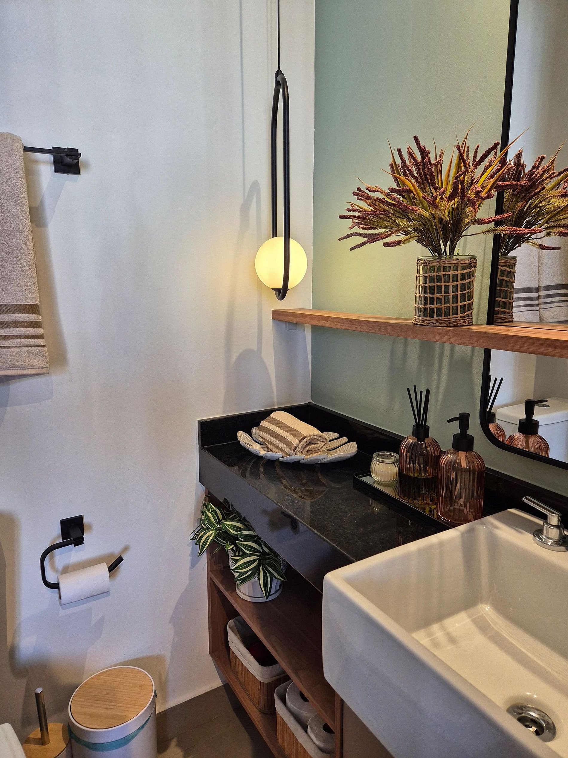 • Banheiro: Design sofisticado e ducha com sistema de alta pressão.
