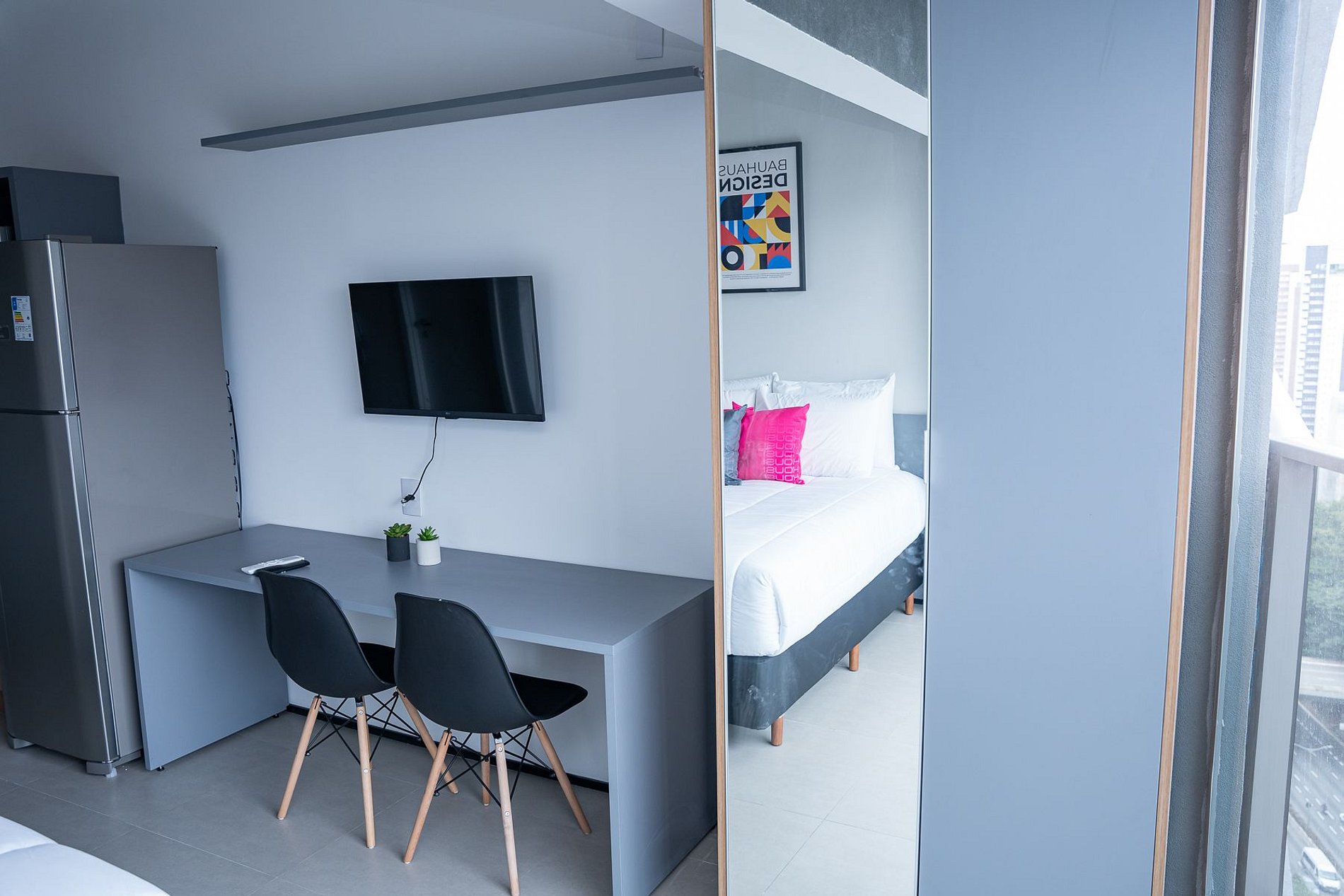 Nossos studios foram pensado para quem não abre mão de estilo, conforto e praticidade. Imagine um lugar onde o design contemporâneo encontra o aconchego de um lar, criando o cenário perfeito para sua viagem a São Paulo.