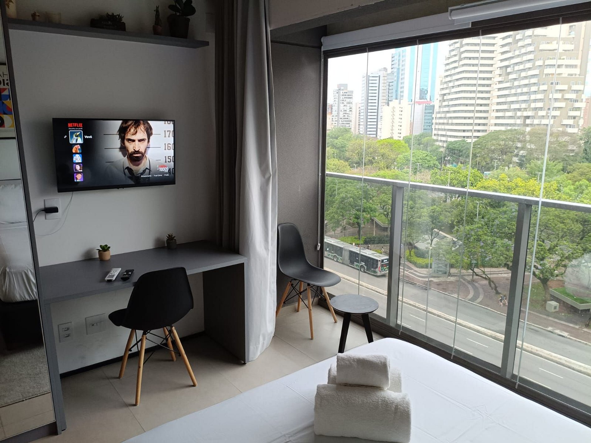 Nossos studios foram pensado para quem não abre mão de estilo, conforto e praticidade. Imagine um lugar onde o design contemporâneo encontra o aconchego de um lar, criando o cenário perfeito para sua viagem a São Paulo.