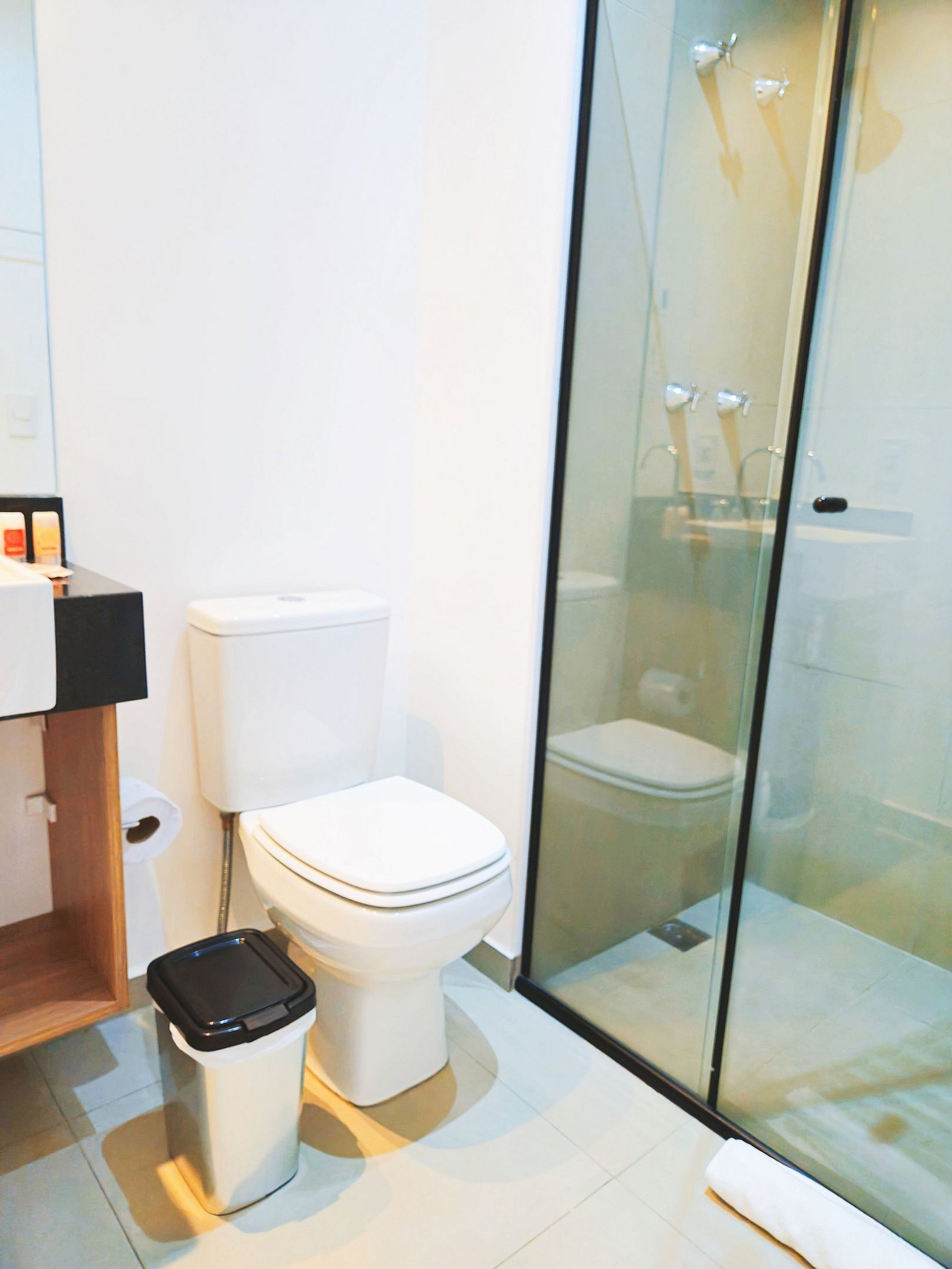 • Banheiro: Design sofisticado e ducha com sistema de alta pressão.