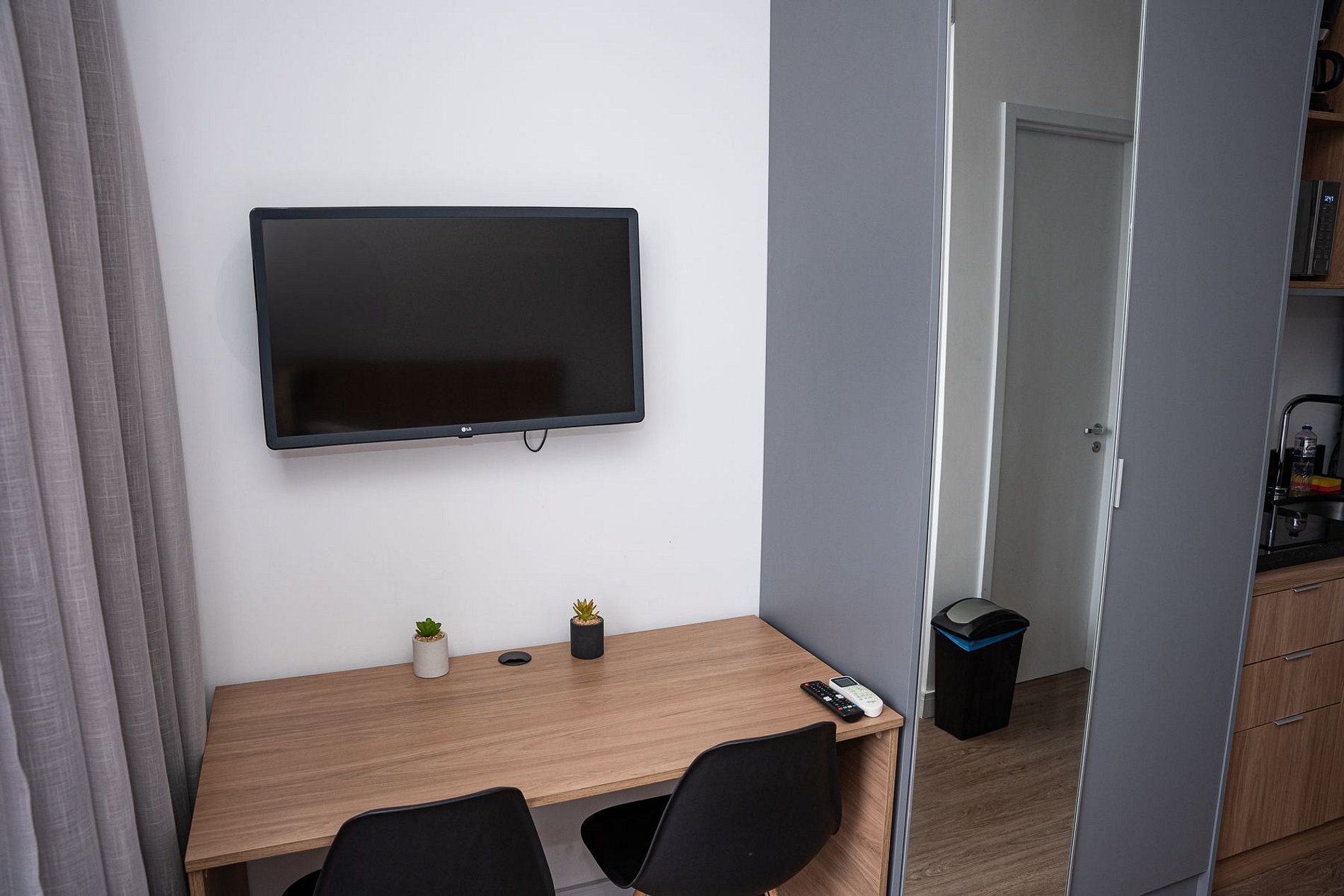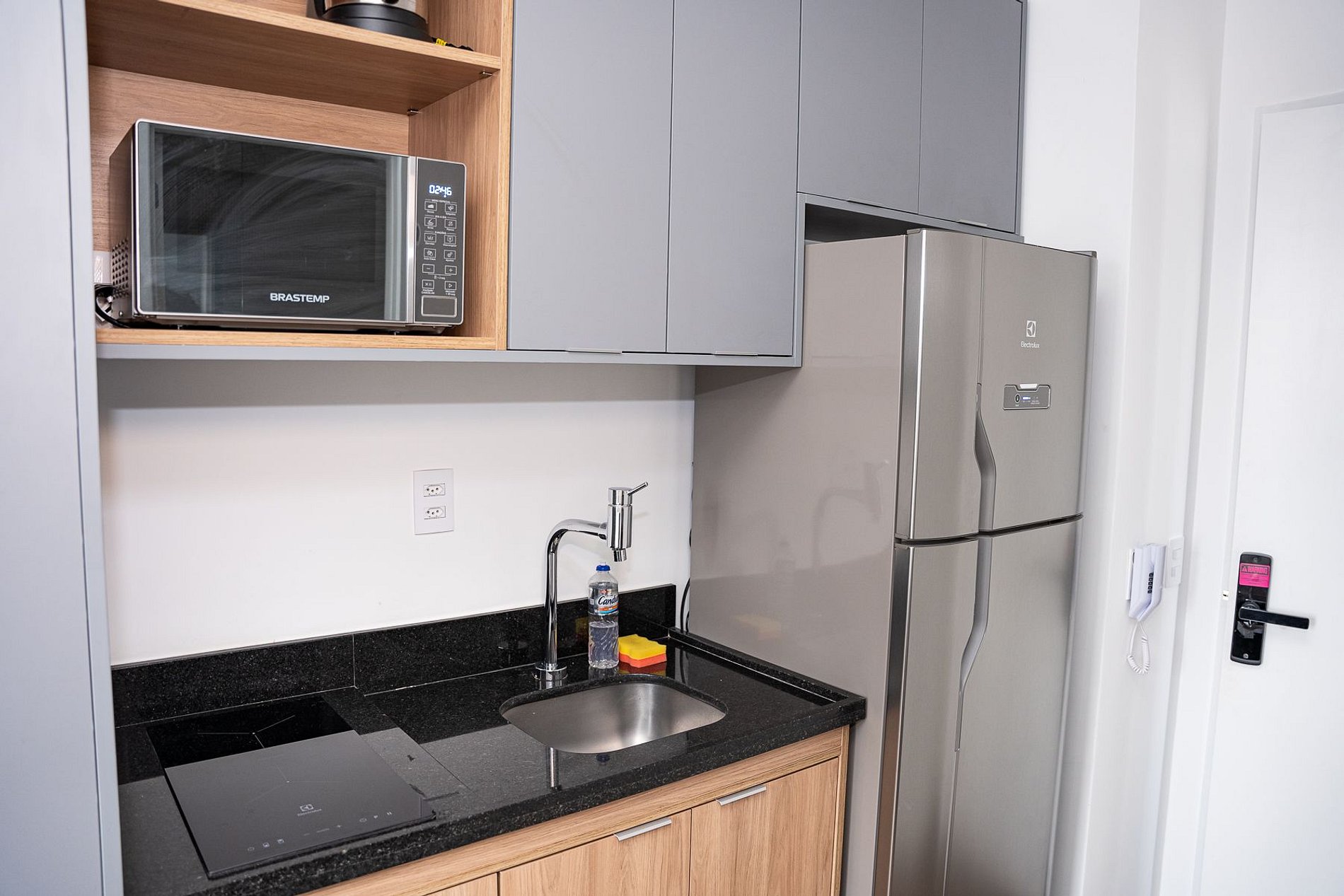 Nossos studios foi pensado para quem não abre mão de estilo, conforto e praticidade. Imagine um lugar onde o design contemporâneo encontra o aconchego de um lar, criando o cenário perfeito para sua viagem a São Paulo.