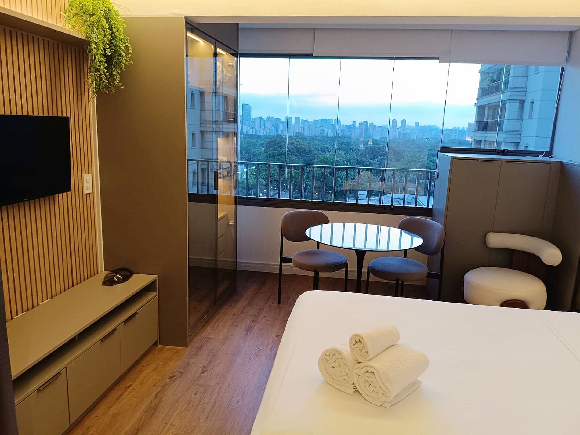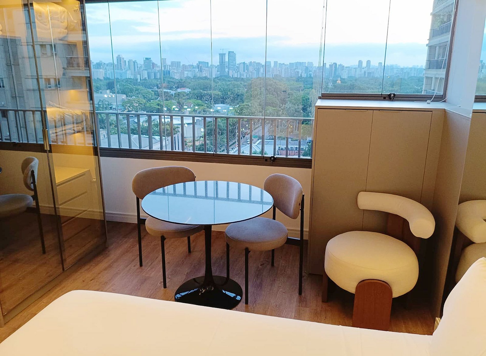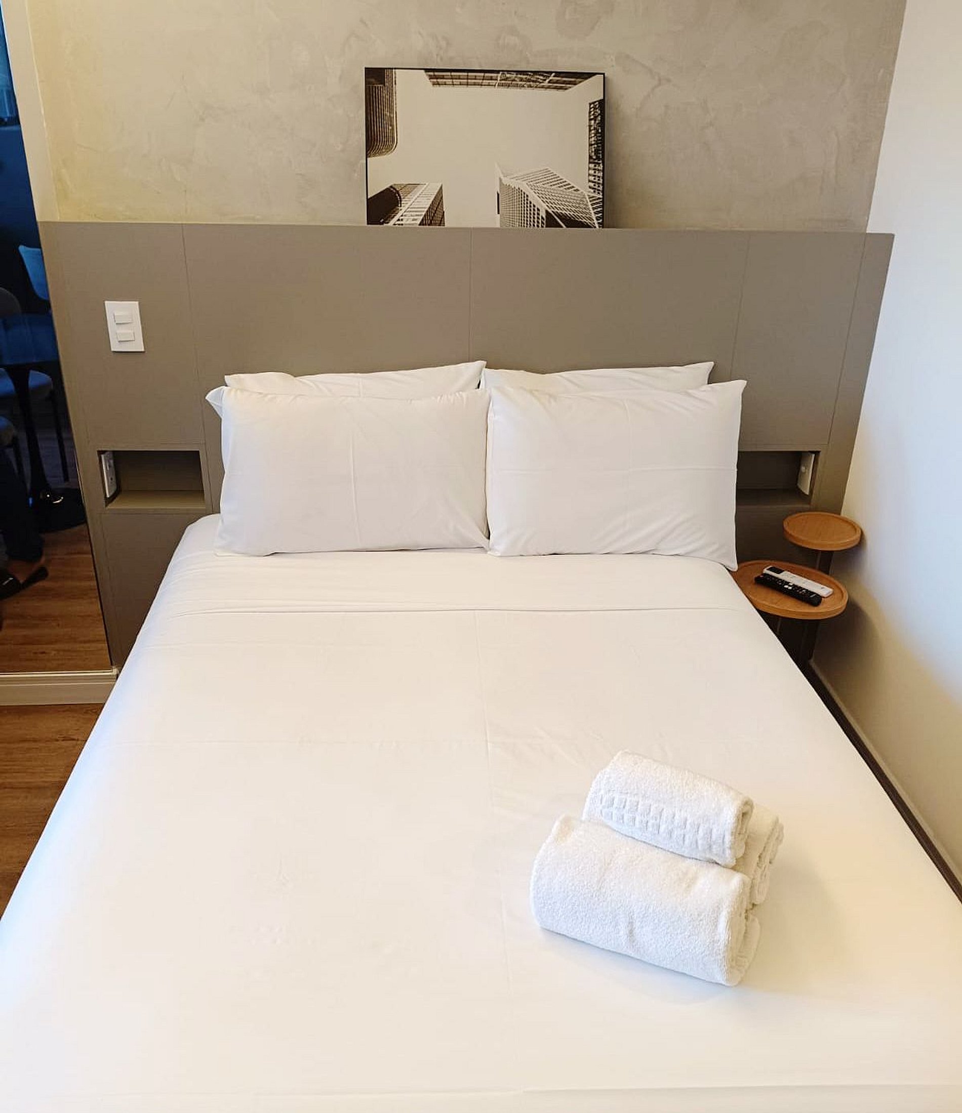 Nossos studios foram pensado para quem não abre mão de estilo, conforto e praticidade. Imagine um lugar onde o design contemporâneo encontra o aconchego de um lar, criando o cenário perfeito para sua viagem a São Paulo. É o equilíbrio ideal entre a exclusividade de uma hospedagem boutique e a sensação de estar em casa.