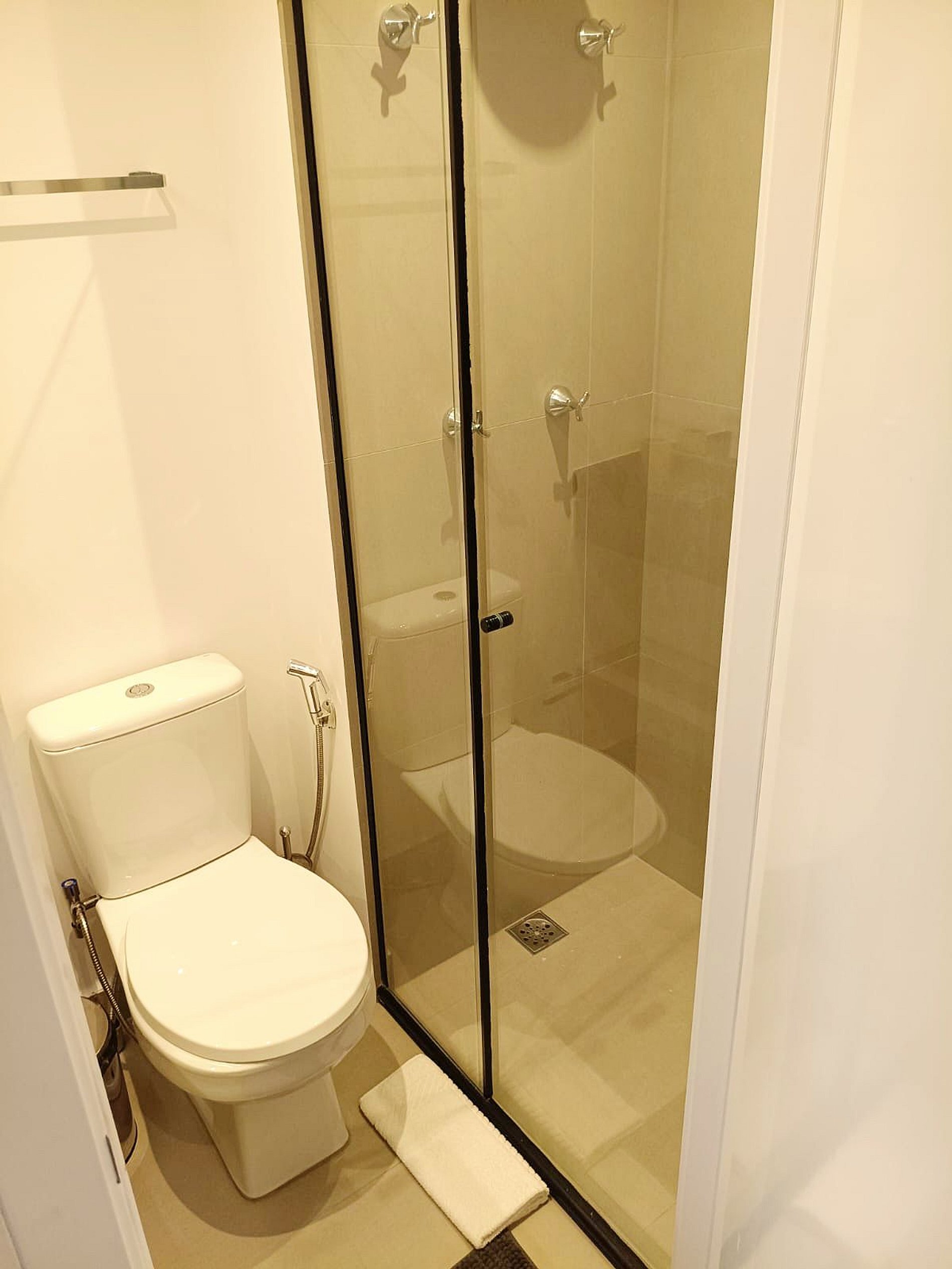 • Banheiro: Design sofisticado e ducha com sistema de alta pressão.