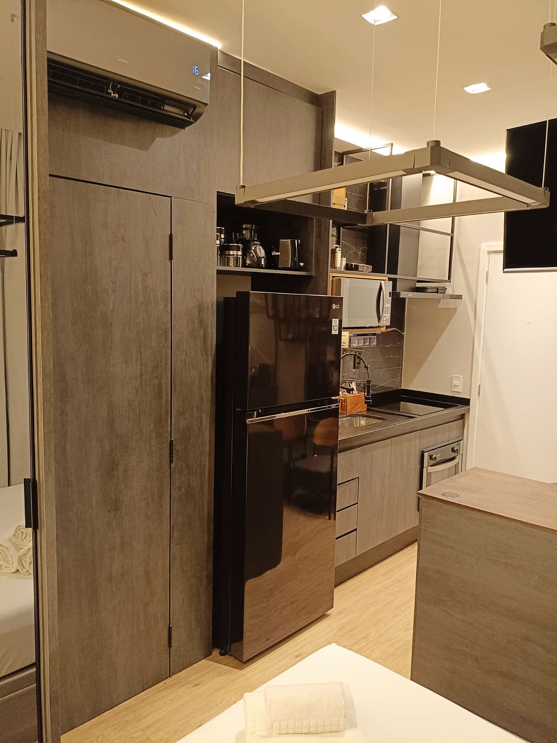 Este studio combina o charme de uma hospedagem boutique com o padrão de conforto de um hotel de luxo, oferecendo privacidade, estilo e tecnologia em um só lugar.